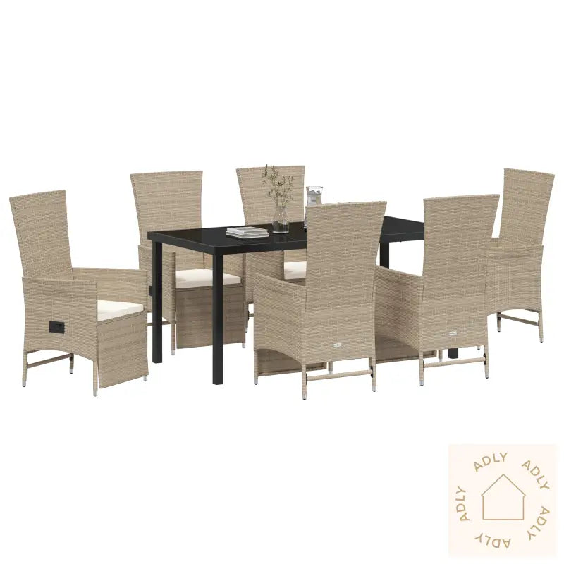 Poly rattan hagemøbler spisebordsett med komfortable stoler og puter