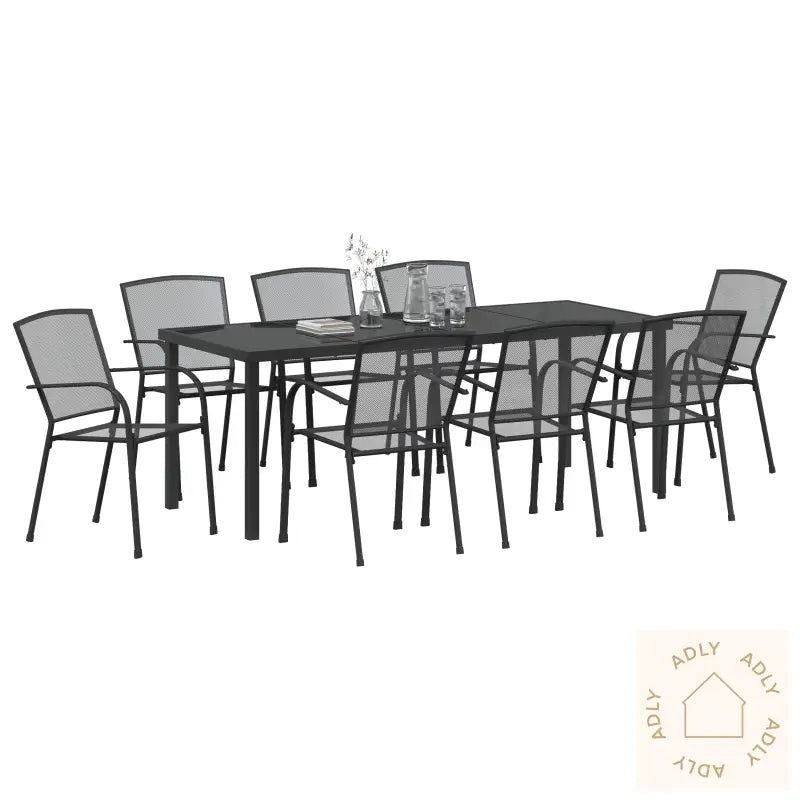 Svart hagemøbler spisestue med stålramme og glassbord