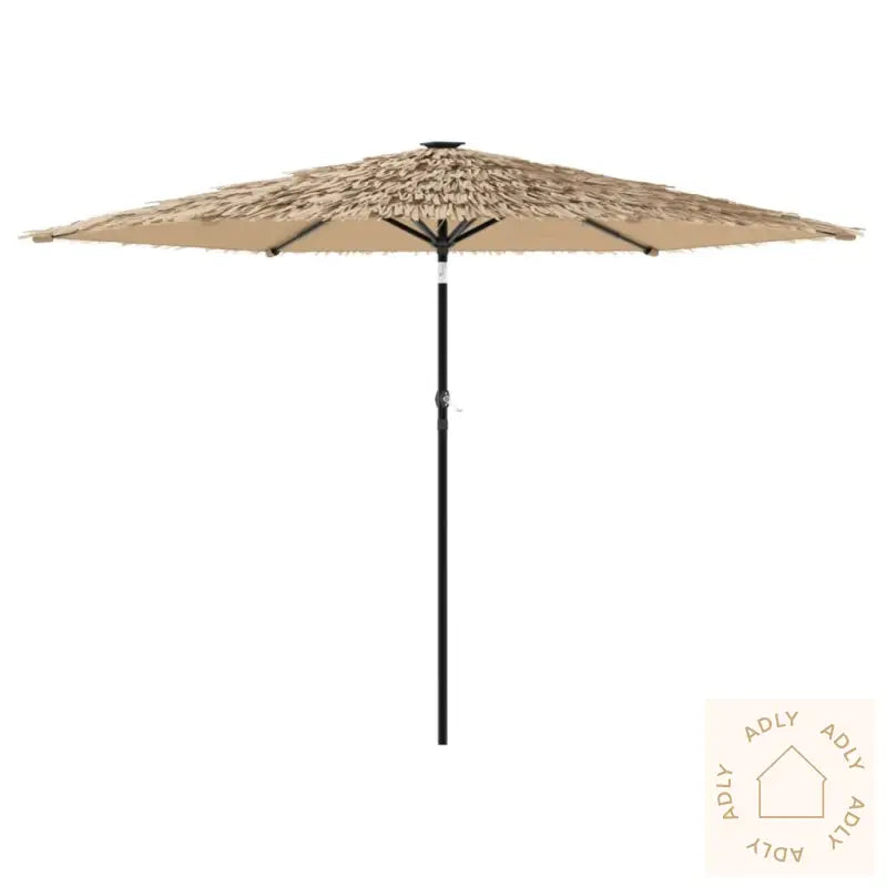 Hageparasoll med LED og pulverlakkert stål til hagemøbler