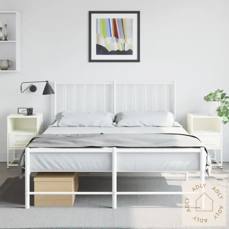 Klassisk sengegavl i pulverlakkert stål med firkantede rør