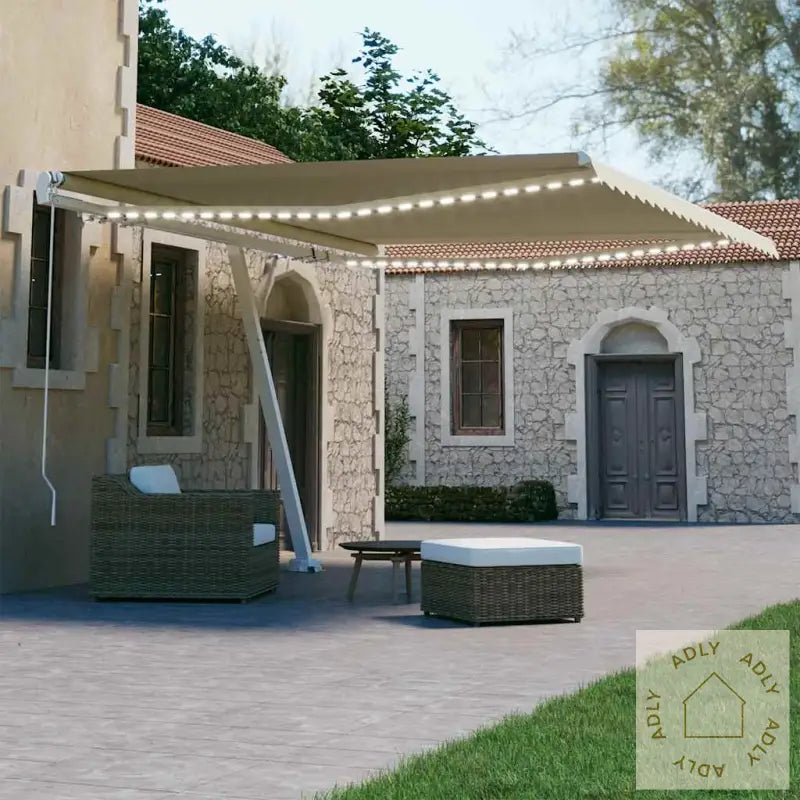 Uttrekkbar markise i pulverlakkert aluminium til hagemøbler