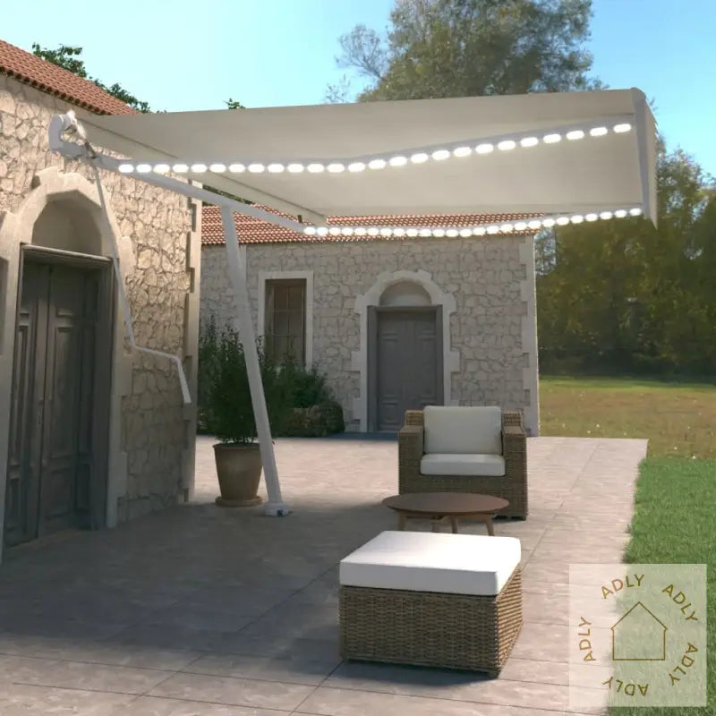 Uttrekkbare markisen til uterommet passer perfekt med hagemøbler