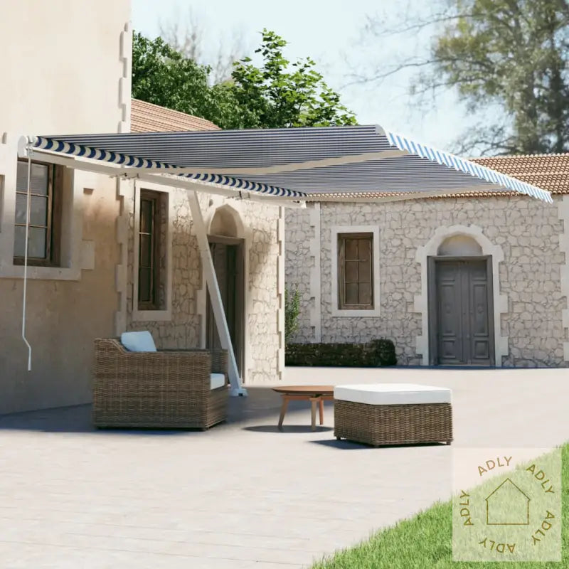 Uttrekkbare markisen til uteplassen passer perfekt med hagemøbler