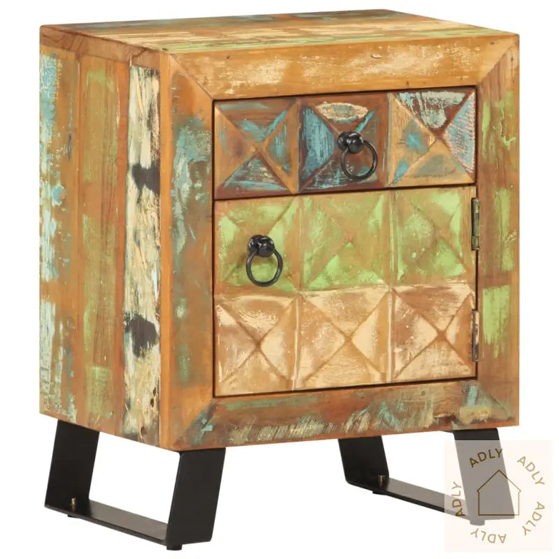 Nattbord i gjenvunnet heltre med gammeldags stil