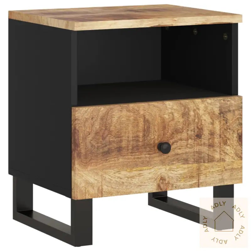 Nattbord med industrielt preg og solid topp i heltre akasie