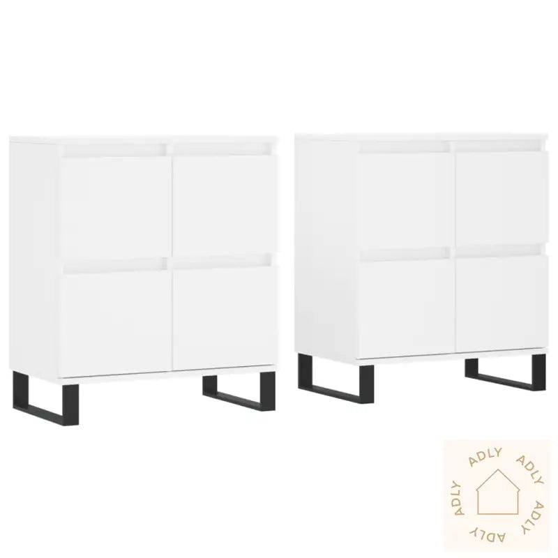 Skjenker 2 Stk Høyglans Hvit Konstruert TreSkjenker 2 Stk Høyglans Hvit Konstruert Tre