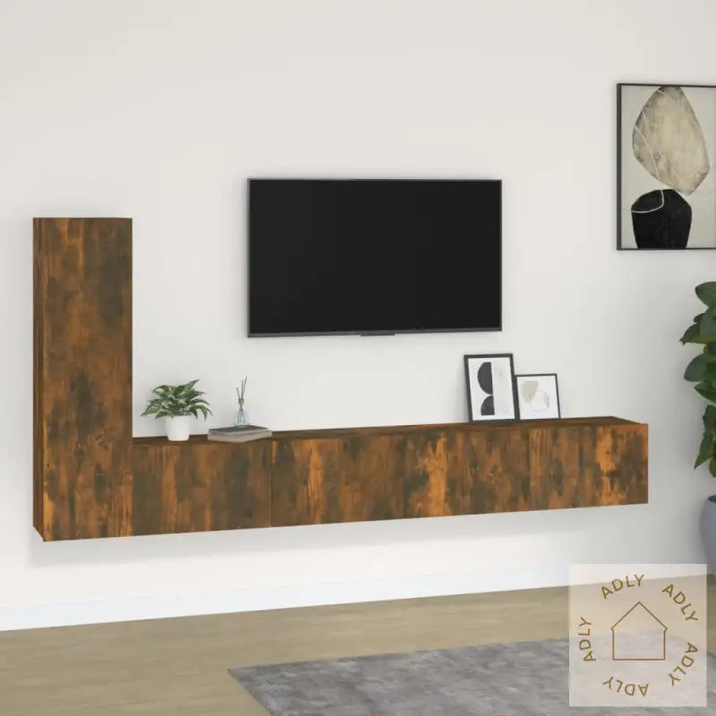 Tv-Skapsett 4 Deler Røkt Eik Konstruert TreTv-Skapsett 4 Deler Røkt Eik Konstruert Tre