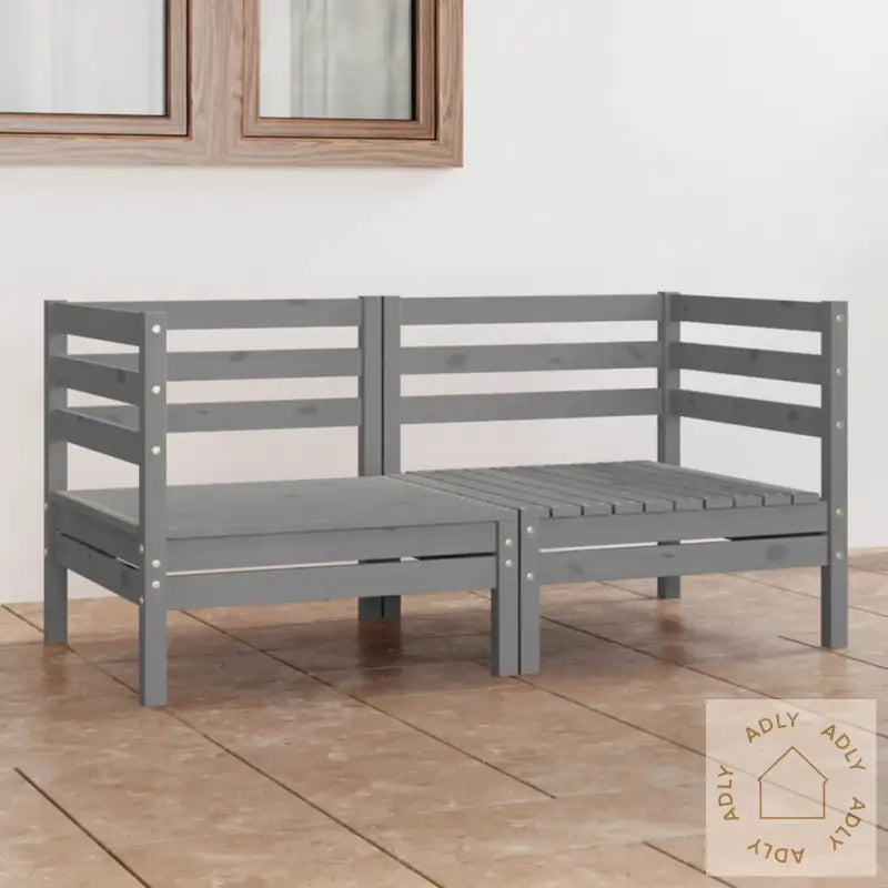 Farge: gråMateriale: heltre furuMål: 63,5 x 63,5 x 62,5 cm (B x D x H)Montering kreves: jaMaksimal lastekapasitet (per sete): 110 kgLeveransen inneholder:2 x hjørnesofaer