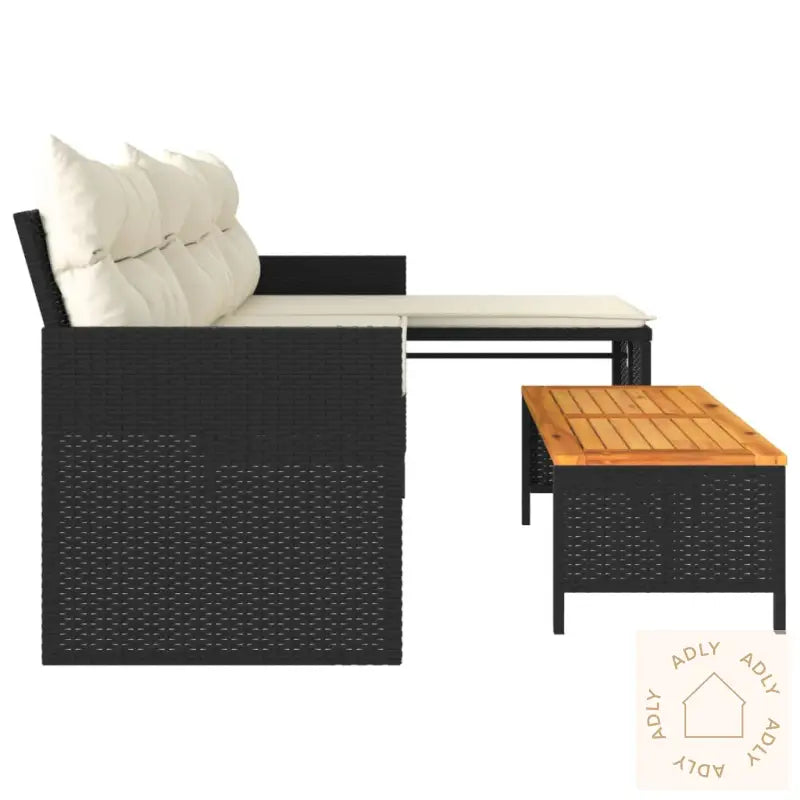Slitesterkt materiale: Sofaen og salongbordet er laget av svart PE-rotting, også kjent som polyrotting, et robust syntetisk materiale som ligner naturrotting men krever minimalt vedlikehold. PE-rotting er lett, værbestandig og veldig enkelt å holde rent, så du slipper å bekymre deg for regn eller sol.Komfortabel seteopplevelse: Med ekstra tykke, myke puter får du en utrolig behagelig sitteplass. Putene gir god støtte, enten du sitter eller strekker ut beina – ideelt for lange, late kvelder ute.Avtakbart og vaskbart trekk: Seteputene har praktiske, vaskbare trekk som kan tas av med glidelås. Dette gjør det enkelt å holde møblene pene og friske over tid, selv om det skulle skje et uhell med mat eller drikke.Robust og stabil ramme: Den pulverlakkerte stålrammen gir hagesofaen ekstra styrke og stabilitet, uansett værforhold. Pulverlakkeringen gjør også stålet rustbestandig, så møblene holder seg fine år etter år.Praktisk bordplate: Hagebordet har en solid bordplate av heltre akasie med oljefinish, som både ser naturlig flott ut og tåler mye. Overflaten er enkel å vaske av med en fuktig klut – praktisk når du skal servere noe godt ute.Godt å vite: