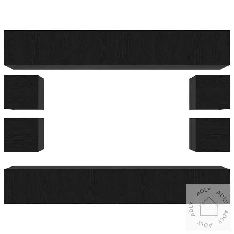 Med fire veggmonterte hyller og skap får du fleksibel oppbevaring, perfekt for å organisere alt fra elektronikk til pyntegjenstander. Den matte overflaten på det naturlige treet gir et tidløst og robust preg, mens svartfargen gjør at settet passer inn med nesten alle typer møbler til hjemmet.