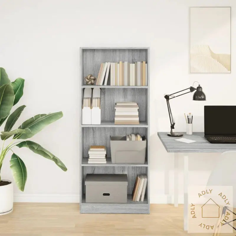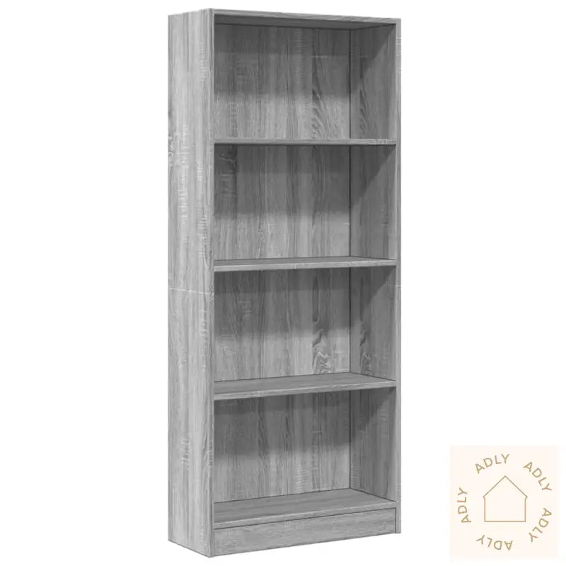 Holdbart materiale: Den er laget av kvalitetskonstruert tre med en jevn, fin overflate som gir ekstra styrke og varig stabilitet. Materialet tåler daglig bruk og motstår fuktighet, noe som gjør den ideell til alle inneområder hvor du vil ha slitesterke møbler til hjemmet.Masse lagringsplass: Bokhyllens åpne hyller gir god plass til alt du ønsker å vise frem eller oppbevare – fra bøker og magasiner til DVD-er, elektronikk eller pyntegjenstander. Alt holder seg organisert og du har alltid det du trenger innen rekkevidde.Lett å rengjøre: Den glatte flaten gjør det enkelt å holde hyllen pen, du tørker bare over med en fuktig klut så ser den ny ut. Perfekt hvis du vil ha møbler som krever minimalt vedlikehold.Allsidig bruk: Denne bokhyllen passer inn overalt – enten du vil ha den i stua, soverommet, gangen eller kanskje sammen med andre møbler til hjemmet ditt. Den nøytrale designen og klassiske grå sonoma-fargen gjør at den matcher de fleste stiler og kan kombineres med både trendy og klassiske innredninger, eller sammen med hagemøbler og andre oppbevaringsløsninger.Advarsel: