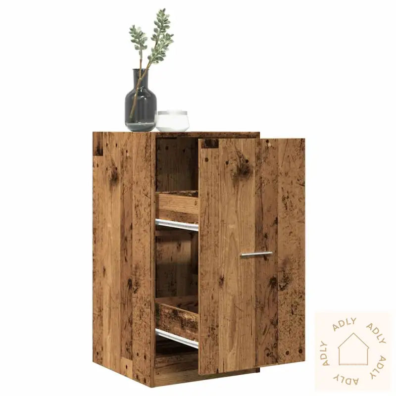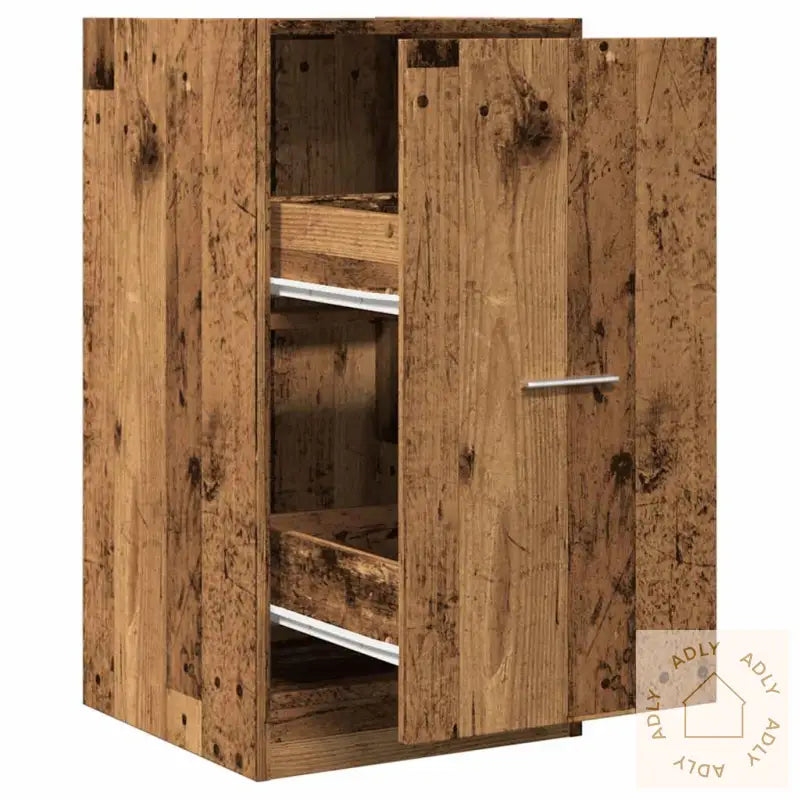 Stabilt og slitesterkt materiale: Skapet er laget av konstruert tre – et robust og stabilt materiale med glatt overflate. Det tåler fuktighet, vrir seg ikke over tid, og motstår sprekker, så du får et møbel du kan ha glede av lenge, enten det brukes alene eller sammen med andre møbler til hjemmet.God lagringsplass: Med dette apotekskapet får du rikelig plass til å organisere og oppbevare tingene dine. Skapet beskytter det du legger inn mot støv og smuss, slik at alt er lett tilgjengelig, samtidig som det holder hjemmet ditt ryddig.Praktisk bruk: Skuffene går lett på solide metallskinner og har elegante håndtak. Du får enkel tilgang til innholdet, og åpning og lukking føles smidig og behagelig i daglig bruk.Allsidig løsning: Passer like godt som oppbevaringsskap, apotekskap eller kjøkkenskap – sett det i stua, på kjøkkenet eller kontoret, alt etter hvor du trenger ekstra plass. Skapet finnes i en smart størrelse som gjør det enkelt å matche med andre møbler i hjemmet, hagemøbler eller utendørsmøbler hvis du tenker helhetlig innredning.Advarsel: