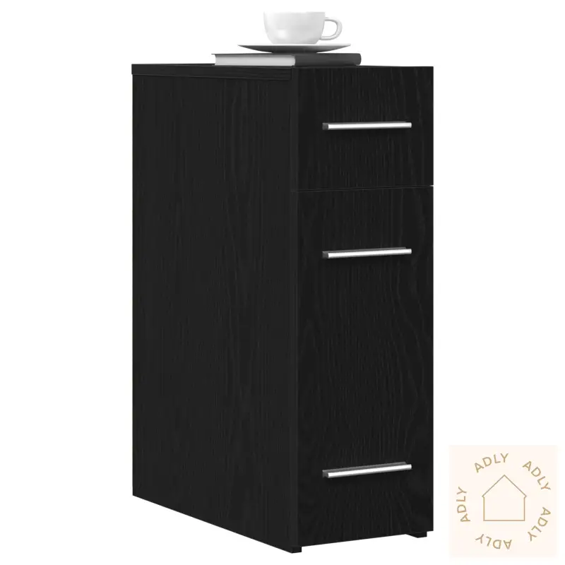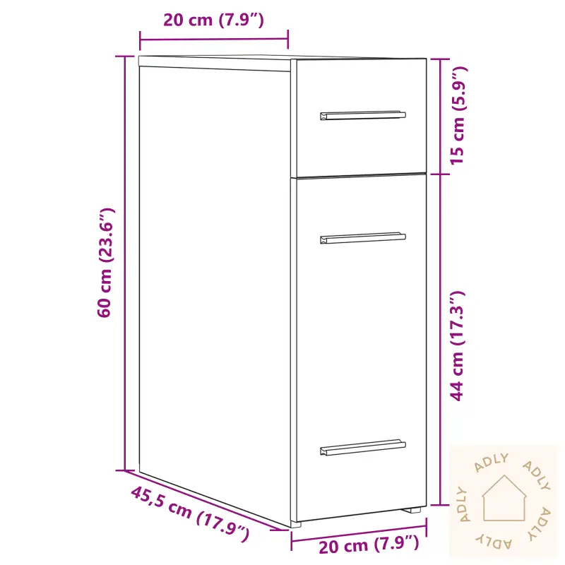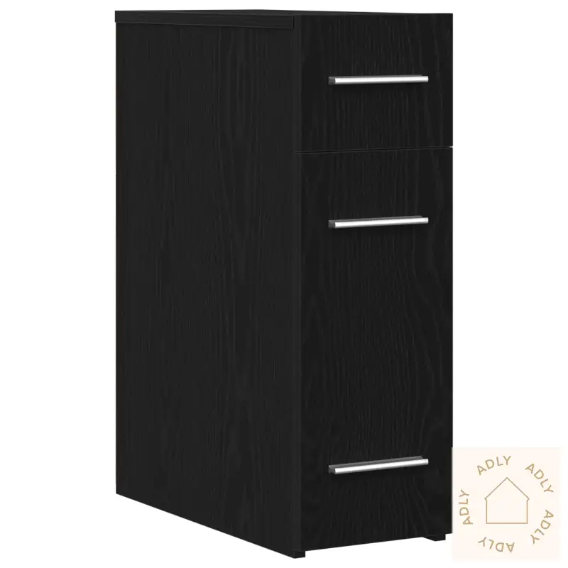 Masse lagringsplass: Apotekskapet byr på god plass, slik at du enkelt kan organisere alt fra sengetøy til dekor eller elektronikk. De tre romslige skuffene gir struktur og enkel tilgang, og den solide toppen egner seg ypperlig for både vaser og bilderammer.Kvalitetsmaterialer: Skapet er laget av slitesterkt konstruert treverk med moderne svart eikeoverflate, noe som sikrer lang levetid og stabilitet – perfekt for daglig bruk.Elegant design: Med rette linjer og svart eik design, matcher det de fleste interiørstiler og fungerer like godt sammen med klassiske som moderne møbler til hjemmet.Praktiske skuffer: Skuffene glir lett, og gjør det enkelt å holde oversikt over småting og personlige eiendeler. Perfekt for deg som vil ha en enkel og ryddig hverdag.Enkel montering: Apotekskapet leveres flatpakket, men det er raskt og problemfritt å sette sammen ved hjelp av en tydelig bruksanvisning. Du trenger bare noen få verktøy, så er du klar til å ta skapet i bruk.Farge: SvartForm: RektangulærMateriale: Konstruert treKun for innendørs brukDeksel inkludert: NeiRom: StueMaksimal vektkapasitet: 60 kgVerktøy til montering følger ikke medDimensjoner: 20 x 45,5 x 60 cm (L x B x H)Vekt: 10,9 kgStige: NeiMerke: Pakken inneholder: 1 x ApotekskapMontering kreves: JaAnbefalt antall personer til montering: 2