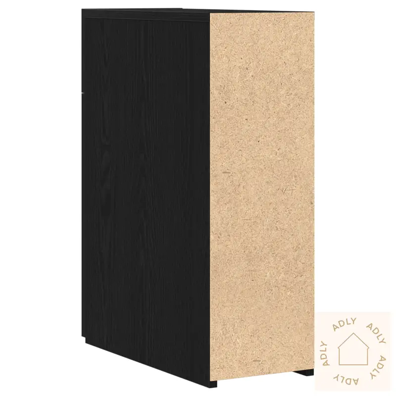 Dette stilige apotekskapet i svart eik er et førsteklasses valg for praktisk og moderne lagring i hjemmet. Med sin unike kombinasjon av stil og funksjonalitet blir det et flott blikkfang samtidig som det holder tingene dine ryddig. Apotekskapet har et minimalistisk, gjennomført design som gjør at det passer enkelt inn med andre møbler til hjemmet, enten du plasserer det i stue eller soverom. Den dype svarte eikefinishen gir rommet et elegant uttrykk og tilfører en eksklusiv touch.