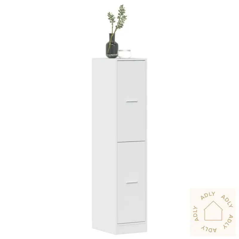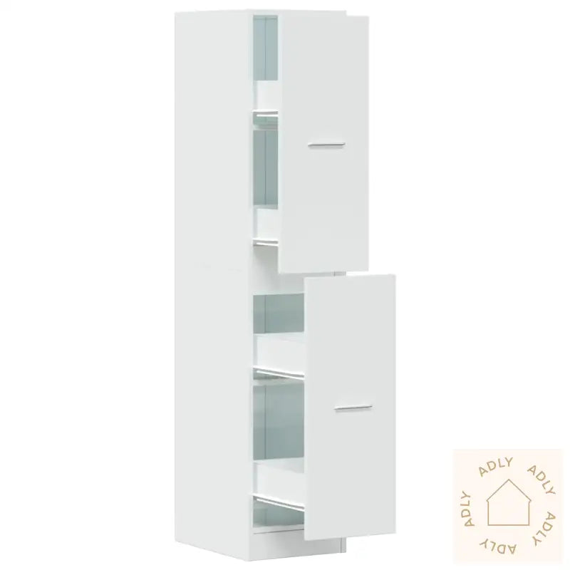 Holdbart materiale: Skapet er laget av solid konstruert treverk, som er kjent for sin jevne overflate og evne til å tåle daglig bruk. Materialet gir skapet styrke og stabilitet, samtidig som det tåler fuktighet godt – noe som gjør det til et smart valg blant bokhyller og stående hyller.Rikelig med oppbevaringsplass: Med fire romslige skuffer hjelper dette apotekskapet deg å holde alle nødvendigheter samlet og lett tilgjengelig, så du får bedre orden på tingene dine hjemme.Enkelt å vedlikeholde: Den glatte overflaten gjør hyllen lett å tørke av og holde ren – bare en fuktig klut er nok. Lite vedlikehold gjør den ekstra brukervennlig i hverdagen.Allsidig anvendelse: Skapet kan brukes på mange måter; enten som apotekskap, generelt oppbevaringsskap eller kjøkkenskap. Den hvite høyglans-finishen lar deg matche skapet sømløst med resten av møbler til hjemmet ditt.Advarsel: