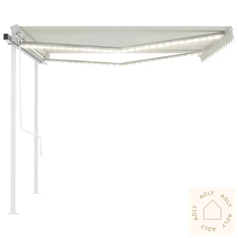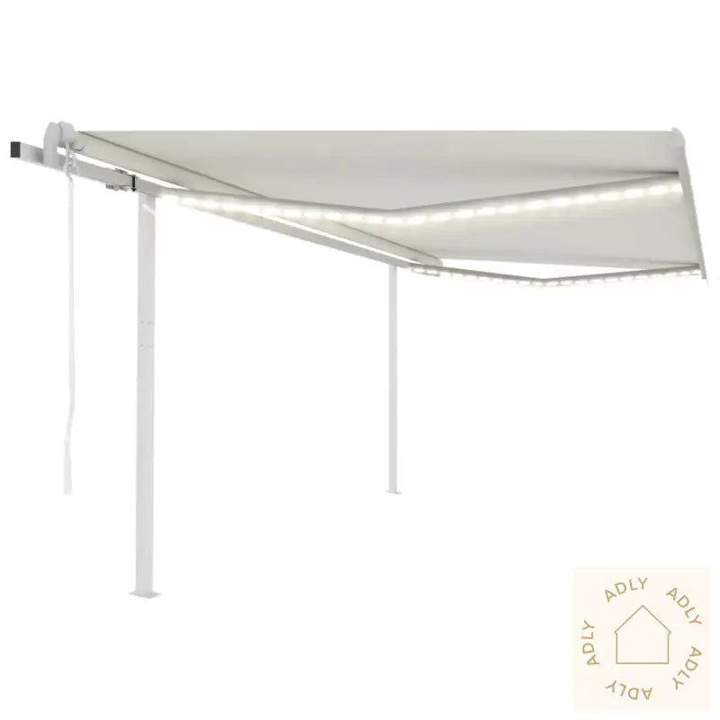 Markisen står stødig takket være solid stolpe, og både vinkel og høyde kan du enkelt tilpasse nøyaktig slik du vil ha det, enten du spiser middag ute eller vil nyte kveldssolen. Den automatiske uttrekkbare funksjonen styres lekende lett med fjernkontrollen, eller du kan bruke den lange håndsveiven om du foretrekker manuell styring. Har vinden plutselig tatt seg opp? Markisen har vindsensor og lukker seg automatisk når været krever det, så du slipper bekymringer. I tillegg får du innebygde LED-lamper for stemningsfull, energibesparende belysning – perfekt for sene sommerkvelder ute under markisen blant blomstrende planter og kanskje noen elegante bokhyller og stående hyller til dekor og oppbevaring.