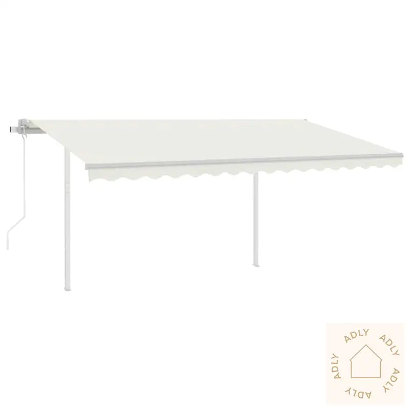 Farge: kremhvitFarge ramme: hvitMaterialer: pulverlakkert aluminium, jern, stoff (100% polyester) med PU-beleggSamlet mål: 400 x 350 cm (L x H)Mål stolpe: 450 x 245 cm (B x H)Spenning: 230V~ , 0,68A; 50/60 HzEffekt: 155 WMoment: 20 NmHastighet: 13 rpmLED-spenning: 12 VMontering kreves: ja