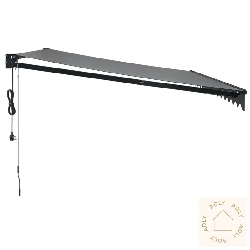Den robuste rammen er laget av pulverlakkert aluminium – et materiale kjent for å være lett, solid og motstandsdyktig mot rust. Dette gir lang levetid og gjør markisen godt egnet selv i det norske klimaet. Selve stoffet i markisen består av 100% polyester med PU-belegg som gjør den ekstra vannavstøtende og beskytter effektivt mot UV-stråler. På denne måten kan både familie og gjester nyte sommeren og uterommet uten å bekymre seg for solens skadelige virkninger.Markisen er fullstendig uttrekkbar og justeres enkelt etter behov. Trekk den ut når du ønsker maks skygge, eller rull den inn for å slippe solen til. Du får alltid den perfekte balansen mellom lys og skygge, samtidig som du beholder utsikten fra terrassen. Denne fleksibiliteten gjør markisen ideell sammen med hagemøbler – slik blir uterommet komplett!Uttrekkbare markiser skal være funksjonelle og enkle å bruke: derfor styrer du markisen trådløst med den medfølgende fjernkontrollen. Skulle batteriet gå tomt, bruker du bare den lange håndsveiven for jevn og enkel manuell betjening. Enkel montering betyr at du raskt kommer i gang med å nye sommerdagene hjemme.Markisen monteres direkte på veggen via de solide veggbrakettene som følger med. Siden alt festes på vegg, sparer du plass på terrassen – gulvet ditt forblir fritt for unødvendige konstruksjoner. Dette gir et ryddig og moderne uttrykk ute.Den elektriske, uttrekkbare markisen har et stilig design i antrasittgrått og passer inn i de fleste miljøer. Markisen er like velegnet hjemme på terrasse, balkong og hage, som i kommersielle soner som restauranter, butikker og kafeer. En smart investering som gir både komfort, beskyttelse og stil til uterommet ditt!Farge: antrasittRamme materiale: Pulverlakkert aluminiumMateriale markise: stoff (100% polyester) med PU-beleggMål: 4 x 3 m (L x B)Spenning: 230 V, 50 HzEffekt: 155 WMoment: 20 NmHastighet: 13 rpmMontering kreves: jaLeveransen inneholder:1 x uttrekkbar markise1 x ramme1 x motor