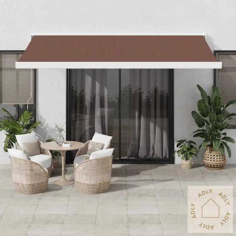 Det slitesterke rammeverket til markisen er produsert i pulverlakkert aluminium, som gir solid holdbarhet og lang levetid uten at du må bekymre deg for rust eller værslitasje. Selve duken er laget i polyester med et PU-belegg, som gir utmerket beskyttelse mot både UV-stråler og sollys, perfekt for norske forhold når du vil ha trygge hagemøbler og møbler til hjemmet.Den uttrekkbare markisen har en smart automatisk funksjon: Trykk enkelt på fjernkontrollen for å åpne eller trekke inn markisen helt sømløst, uten anstrengelse.Du kan tilpasse vinkelen og høyden akkurat slik du ønsker det – både med fjernkontroll og den brukervennlige sveiven med langt håndtak, alt for å sikre optimal skygge uansett tidspunkt på dagen.Det stilrene og enkle designet gjør at uttrekkbare markisen passer flott inn overalt, enten det er på private terrasser, balkonger eller i kommersielle uteområder som restauranter, kafeer og butikker. Perfekt for deg som vil utvide bruksområdet for hagemøbler og sittegrupper under åpen himmel.Farge på duk: brunRammefarge: hvitMateriale: pulverlakkert aluminium, 100 % polyesterduk med PU-beleggTotale mål: 400 x 300 cm (L x B) – gir romslig dekning for flere sitteplasser uteDuken er både vannavvisende og smussavstøtende, så du slipper mye vedlikehold og rengjøringDrives med 230 V~ (0,95 A; 50 Hz), kraftig motor på 226 W gir pålitelig ytelseMaks dreiemoment: 40 Nm – forkorter tiden det tar å trekke inn/ut markisenMaks hastighet: 13 rpmMontering kreves før bruk
