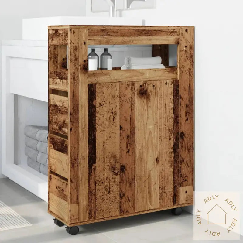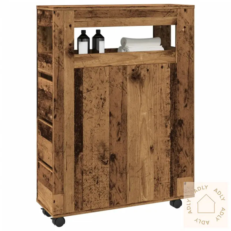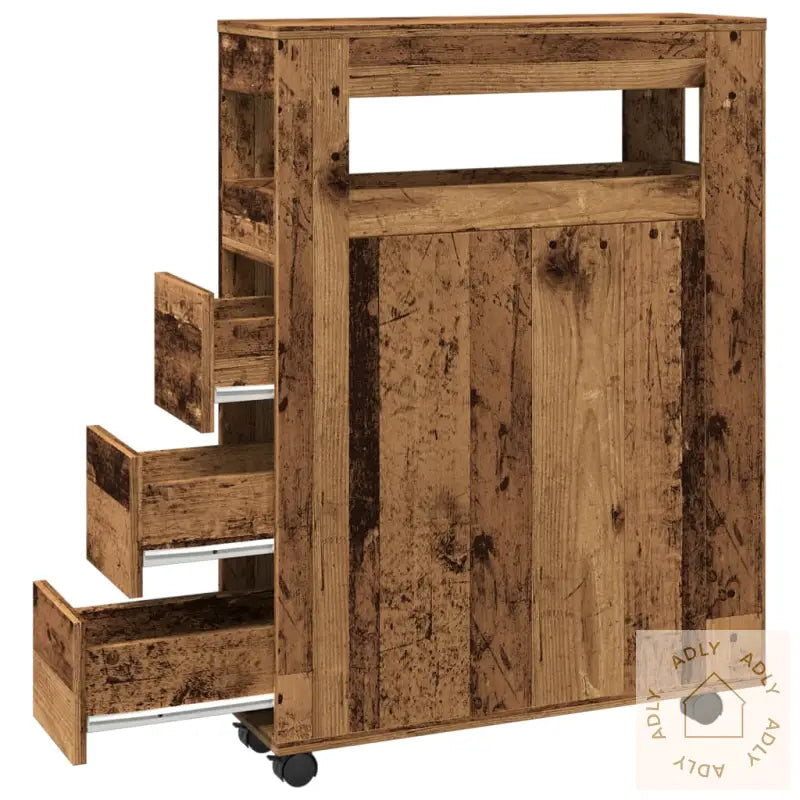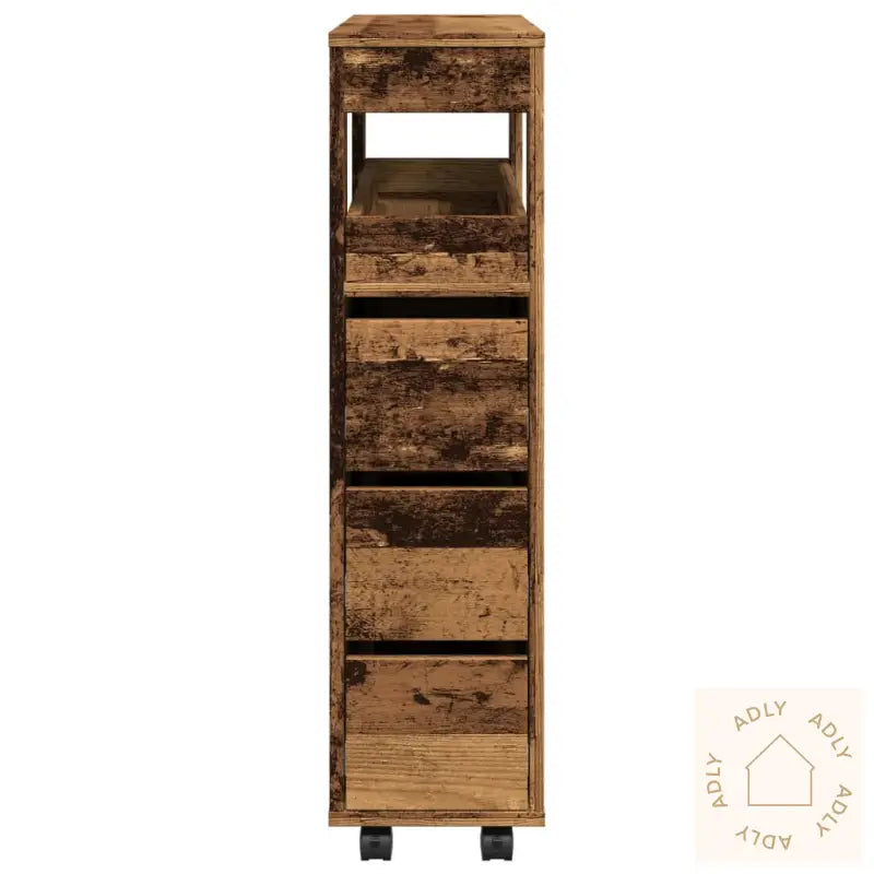 Stabilt og slitesterkt materiale: Skapet er laget av konstruert tre, som har en solid og holdbar struktur. Overflaten er glatt og ekstra motstandsdyktig mot fukt, vridning og sprekker, noe som gjør dette til et smart valg for møbler til hjemmet som trenger lang levetid – spesielt på badet der det ofte er høy luftfuktighet.God oppbevaringsplass: Med sin slanke utforming gir dette baderomsskapet overraskende mye oppbevaring. Hyller og skuffer gjør det enkelt å holde orden på småartikler, håndklær og toalettsaker, samtidig som de beskytter alt mot støv og smuss. Dette bidrar til at badet alltid ser ryddig ut.Lett å flytte: Slanke baderomsskapet har 4 praktiske hjul slik at du kan flytte skapet akkurat dit du ønsker, selv i små rom. To av hjulene kan låses for stabilitet, så skapet står trygt når du har funnet den perfekte plassen.Praktisk bruk: Høykvalitetsskinner i metall sørger for at skuffene glir lett og jevnt, slik at du alltid har rask tilgang til det du oppbevarer. Det brukervennlige designet gjør at selv store familier eller husholdninger får effektiv organisering på badet eller kjøkkenet.Allsidig og smart: Dette tynne baderomsskapet passer ikke bare på badet – det kan like gjerne brukes som et kompakt oppbevaringsskap, en kommode på kjøkkenet eller stua, eller sammen med hagemøbler ute på terrassen. Det fleksible designet matcher ulike behov for oppbevaring, enten du trenger bokhyller og stående hyller eller et ekstra møbel på soverommet.Farge: gammelt treMateriale: konstruert treSamlet mål: 65 x 23 x 90 cm (B x D x H)Mål skuff: 19 x 43,5 x 16 cm (B x D x H)Mål øverste skuffeboks: 16 x 60 x 55 cm (B x D x H)Lastekapasitet hylle: 20 kgLastekapasitet per skuff: 5-8 kgTotal lastekapasitet: 60 kgAntall hjul: 4 (2 med bremser)Montering kreves: ja