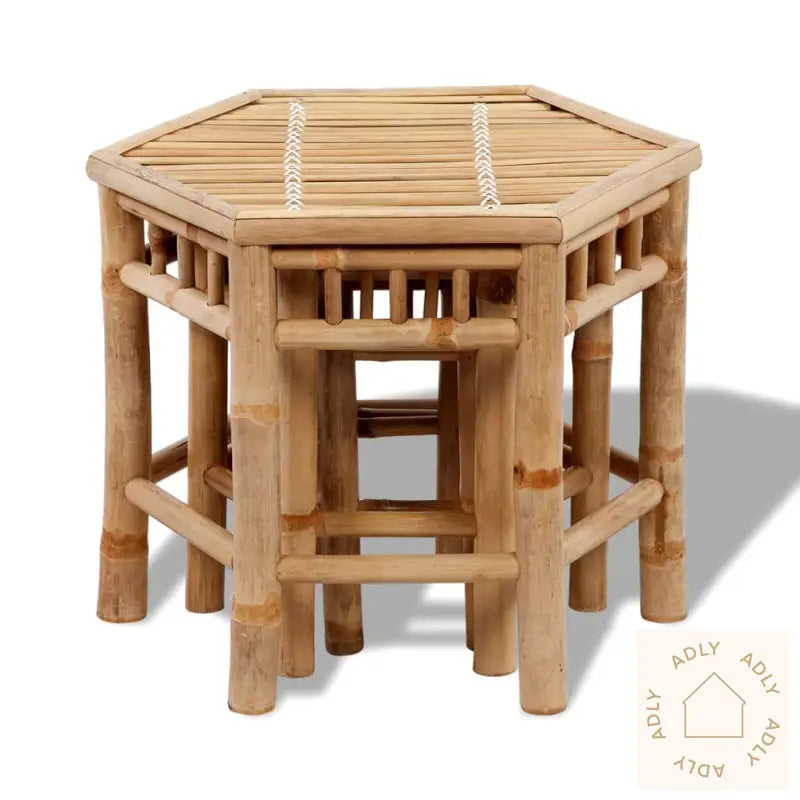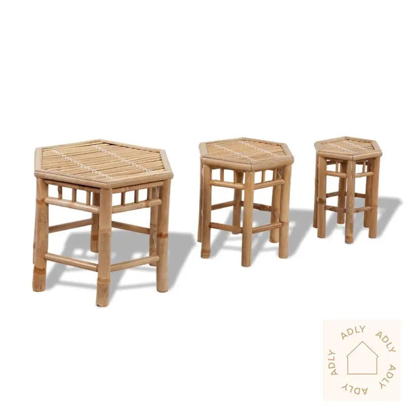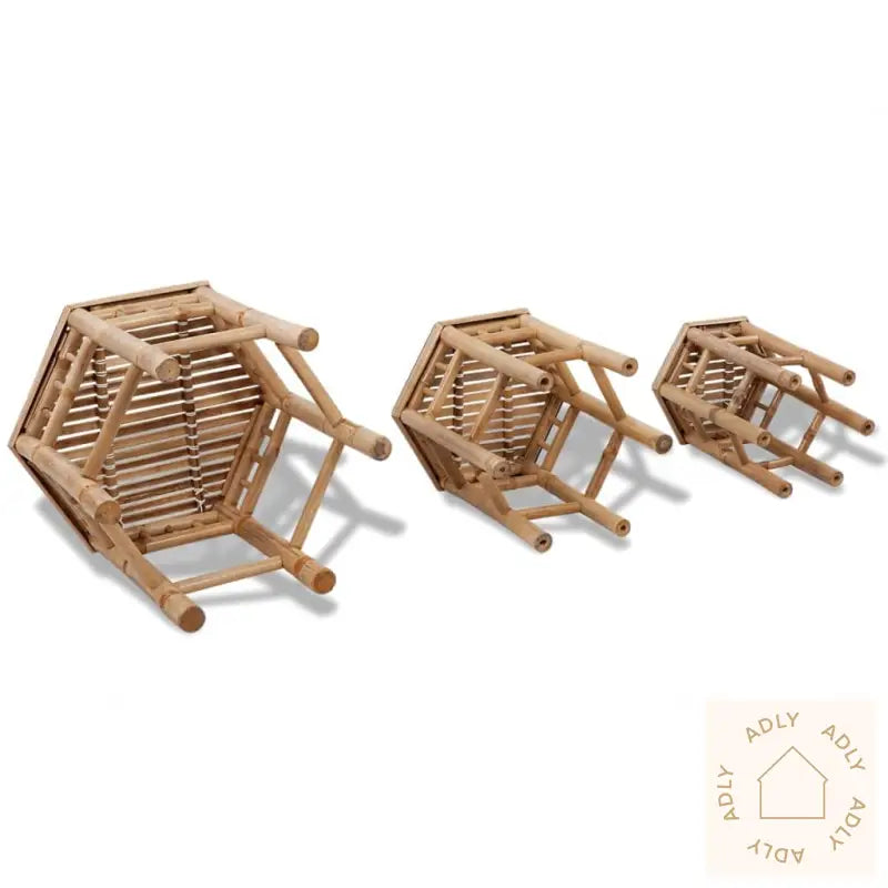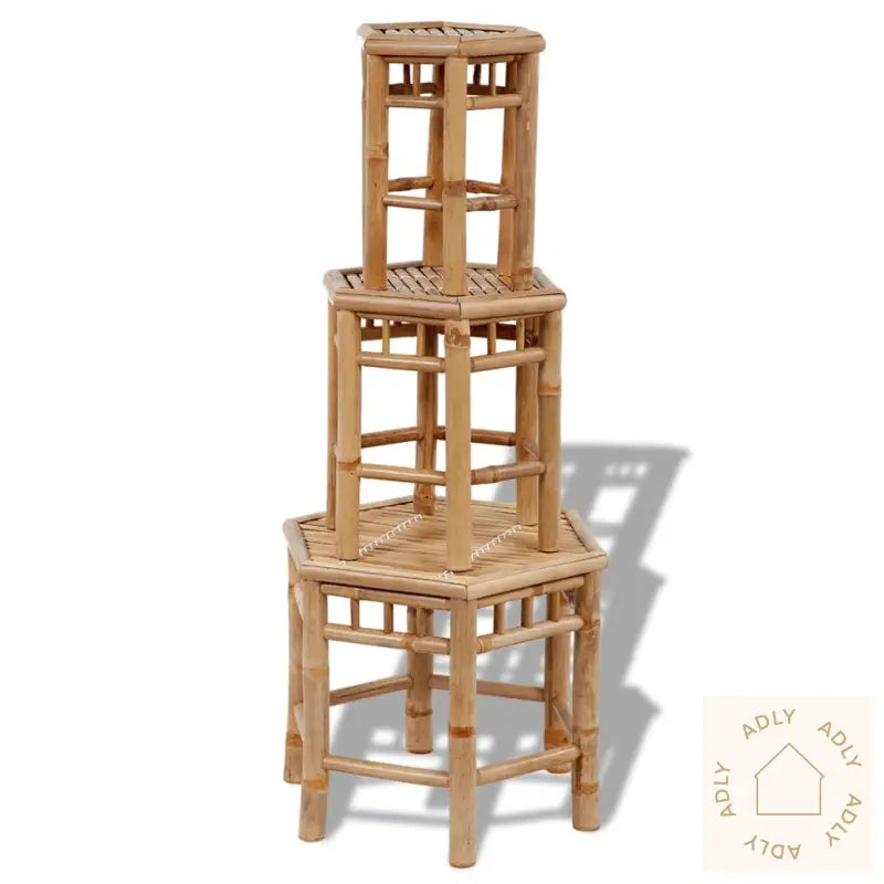 Du får levert 3 stk bambuskrakker i forskjellige størrelser, slik at du får et multifunksjonelt sett med flere bruksområder. Merk: For å sikre lengst mulig levetid på dine hagemøbler anbefales det å dekke dem til med et vanntett trekk når de står ute over tid.