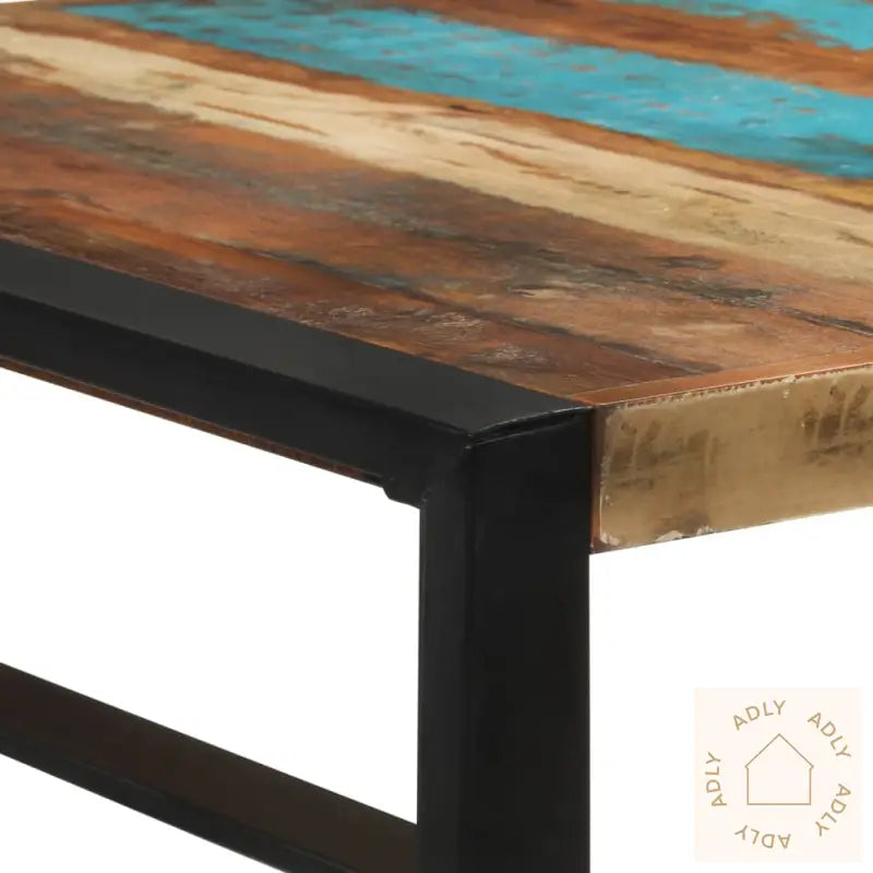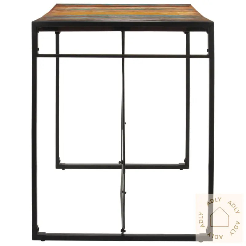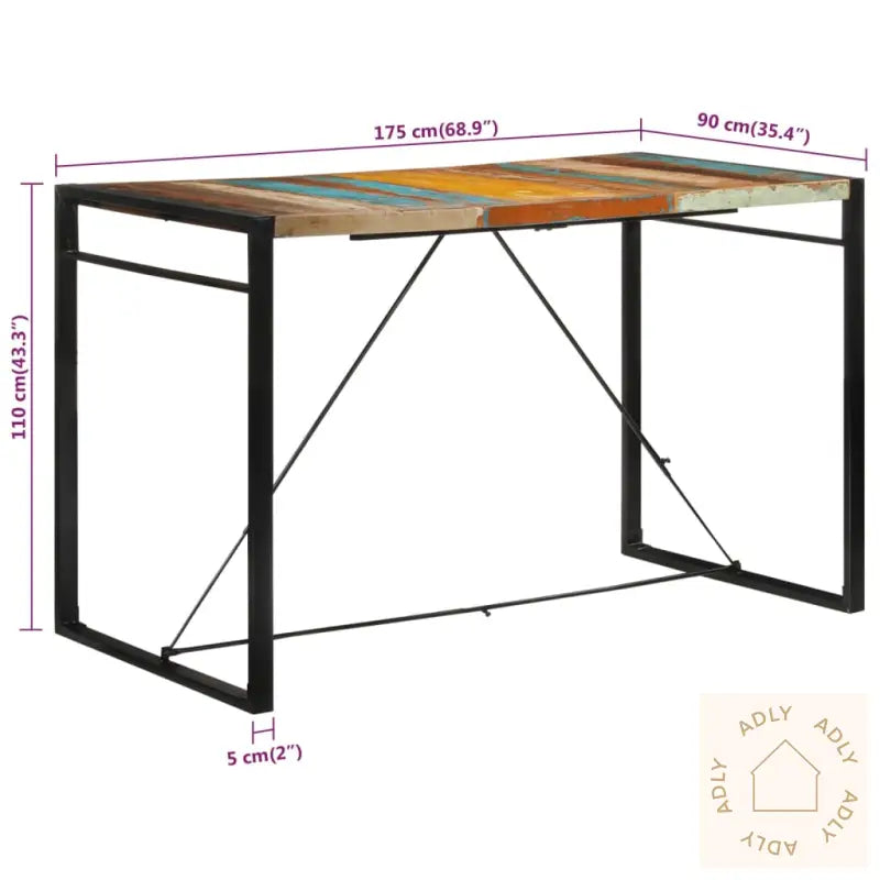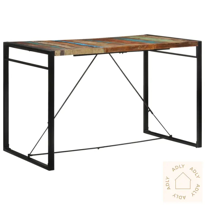 - Gjenvunnet heltre: Barbordet er laget av gjenvunnet heltre — en solid miks av bærekraftig gjenbrukt tømmer som teak, mangotre, furu og bøk. Slike materialer har ofte tidligere blitt brukt i gamle fabrikker, skur eller båter, noe som gir hvert bord sin egen historie og gjør at fargenyanser og tekstur varierer naturlig fra produkt til produkt. Et artig innslag for deg som ønsker unike hagemøbler eller solide bokhyller og stående hyller med særpreg.