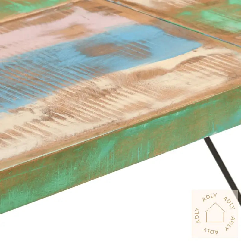 Gjenvunnet heltre: Bordplaten er laget av gjenvunnet heltre, satt sammen av kvalitetsmaterialer som teak, mango, furu og bøk, hentet fra blant annet gamle fabrikker, skur og båter. Dette gir ikke bare et unikt og rustikt uttrykk, men gjør også hvert eneste bord til et håndlaget kunstverk – ingen har helt samme farger eller karakter.Stabil jernramme: Den solide rammen i jern gir ekstremt god stabilitet og gjør at bordet tåler daglig bruk og samlinger med både små og store grupper.Robust bordplate: Toppen av bordet er ekstra solid og perfekt for servering av alt fra forfriskninger og tapas til dekor, planter og kanskje en av dine nye bokhyller og stående hyller av tre.Materialer: Gjenvunnet heltre med flerfarget finish, jernMål: 150 x 70 x 107 cm (B x D x H)Montering kreves: Ja