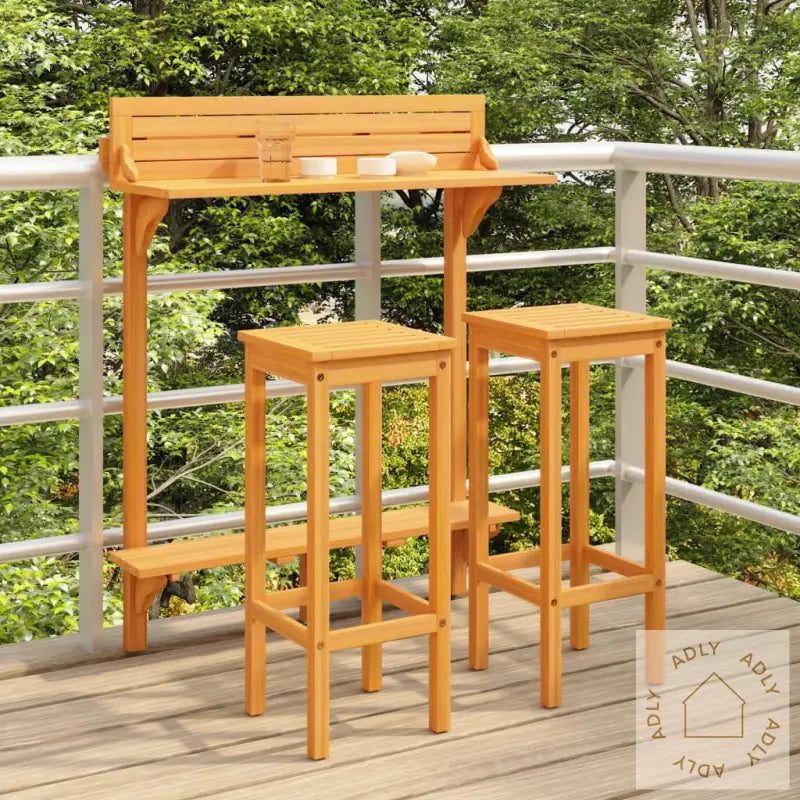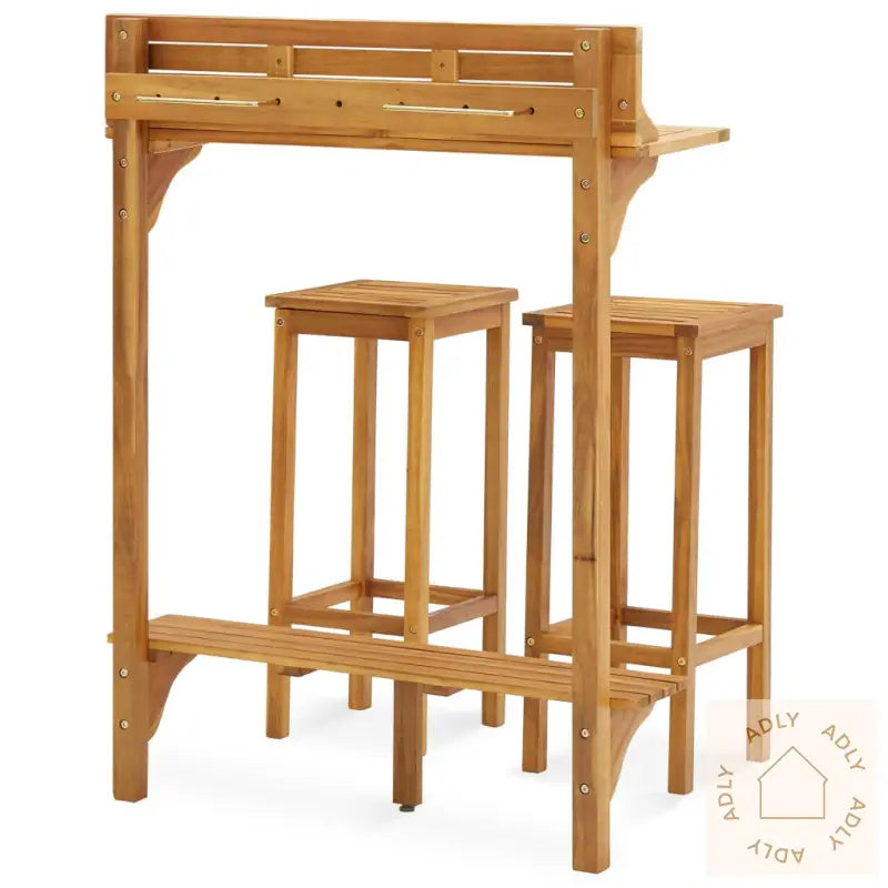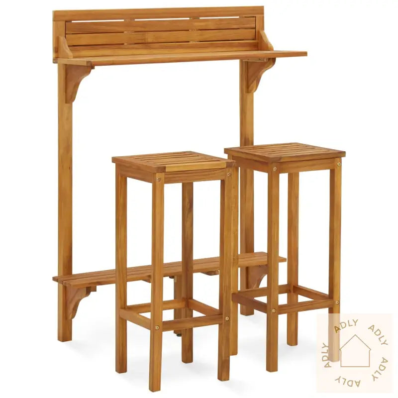 Dette barsettet i tre er et stilig og praktisk tilskudd til hagen eller terrassen – perfekt som både spiseplass og et sosialt samlingspunkt. Dette allsidige settet fungerer også flott som en plassbesparende løsning for mindre balkonger, og gir deg muligheten til å nyte utendørs måltider eller hyggelige stunder med venner.