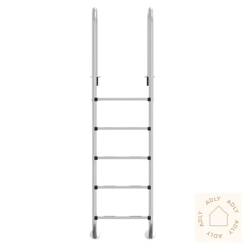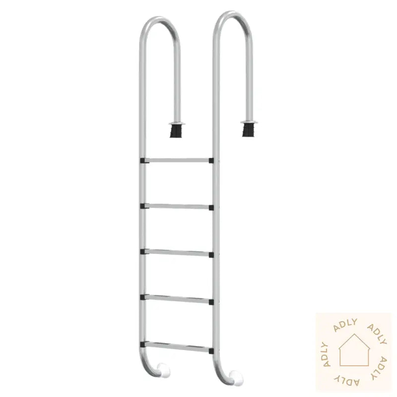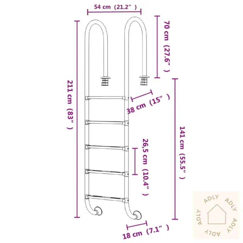 Farge: sølvMaterialer: 304 rustfritt stål med børstet finish, plastSamlet mål: 54 x 38 x 211 cm (B x D x H)Diameter rør: 42 mmEgnet minimum dybde basseng: 151 cmInkluderer 5 trinn med sklisikker overflatePasser ikke for bakkebassengerEgnet for forankring i betongoverflate