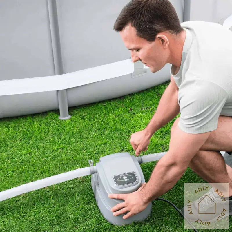Denne bassengvarmeren 58259 fra Bestway gjør det superenkelt å holde vannet i svømmebassenget ditt behagelig varmt. Perfekt for deg som vil nyte et ekstra komfortabelt og avslappende miljø, enten du bader, plasker eller vil leke sammen med venner og familie. Den solide varmeren har en effektiv ytelse og øker vanntemperaturen med omtrent 0,5 °C til 1,5 °C i timen—det betyr at du raskt får et deilig badevann, uten stress med kompliserte justeringer.