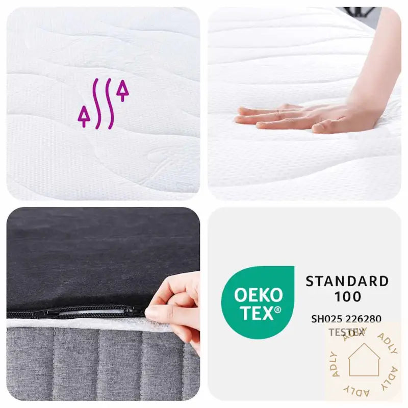 Madrassen er levert komprimert og rullet i eske, så du enkelt kan transportere, flytte og sette den opp på ditt eget rom – en praktisk løsning når du handler møbler eller utendørsmøbler på nett.Farger: Hvit, lysegrå og svartMateriale: Stoff (100% polyester)Materiale fyll: Pocketfjær, skum, isolasjonsputeMål: 80 x 200 x 19 cm (B x L x T)Hardhet: MiddelsJacquard- og quiltedetaljer gir ekstra tekstur og estetikk, så madrassen blir både funksjonell og flott blant andre møbler til hjemmet.