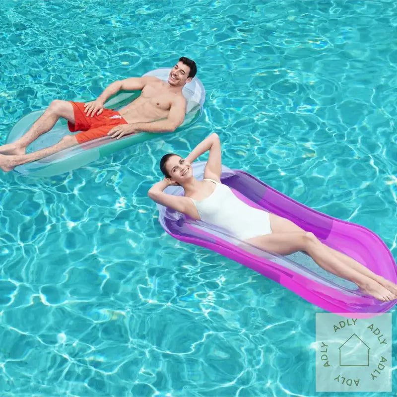 Et nettinggulv gir en god svalende effekt for kroppen, samtidig som designet gjør det enkelt å slappe av og holde seg avkjølt selv på de varmeste dagene. Madrassen blåses enkelt opp og tømmes raskt, så den er lett å ta med, oppbevare eller transportere – ideell både hjemme og på ferie. Vær oppmerksom: Bestway Aqua Lounge leveres i enten lilla eller blå farge, og hvilken farge du får er tilfeldig.