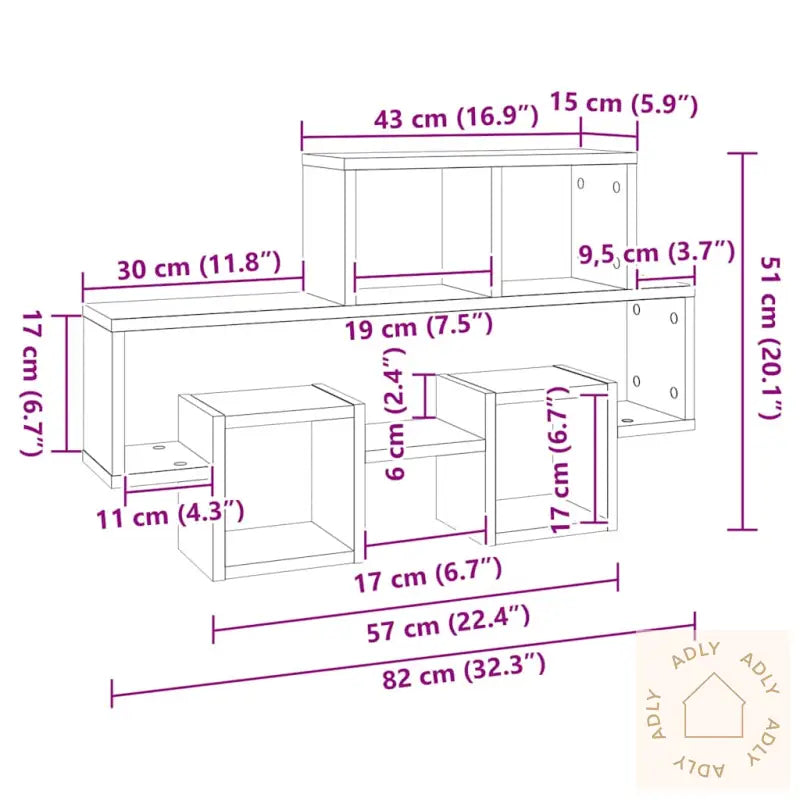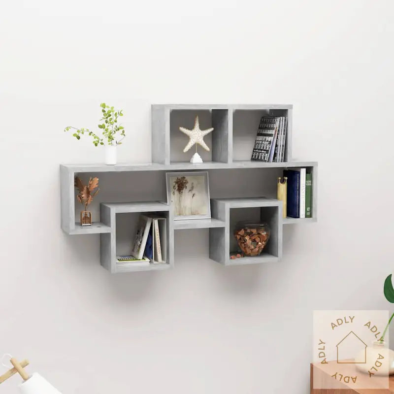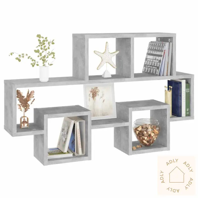 Med sine åpne rom gir denne vegghyllen deg fleksibilitet til å oppbevare og vise frem både bøker, premier, samleobjekter og pynt. Enten det er leker, dekorgjenstander eller personlige minner du vil sette frem, får du lett oversikt i en hylle som både har karakter og praktiske egenskaper. Konstruksjonen i solid konstruert tre gjør at hyllen både tåler daglig bruk og varer lenge. Det elegante utseendet og den raffinerte betonggrå finishen passer inn med ulike interiørstiler, så du kan kombinere hyllen med både trendy og klassiske møbler.