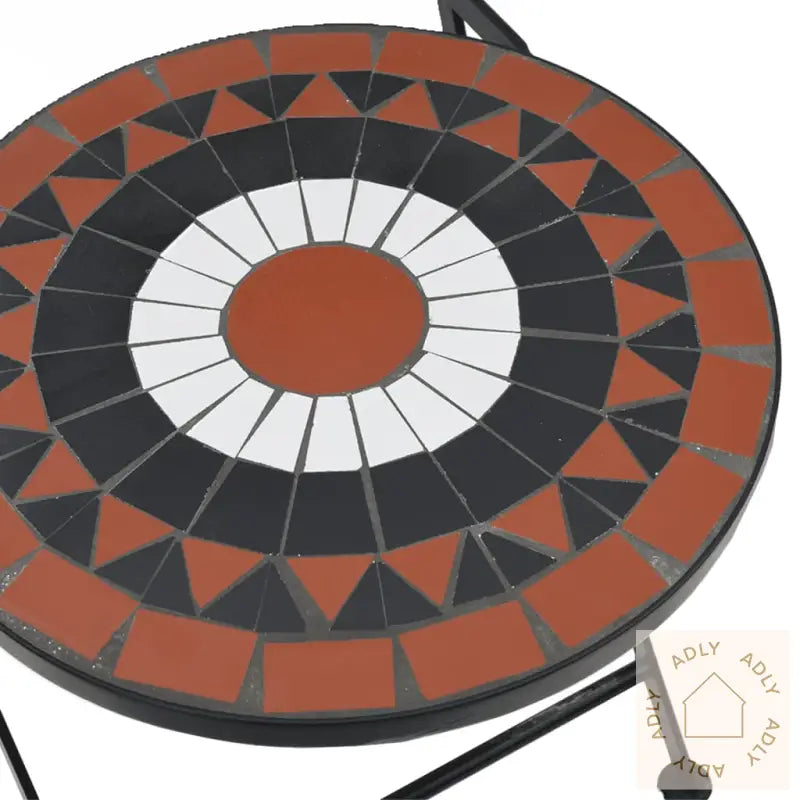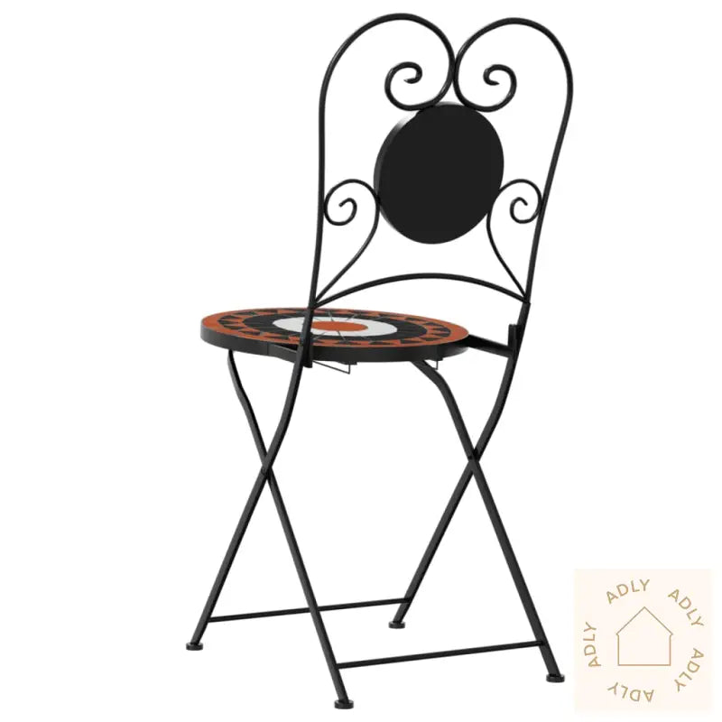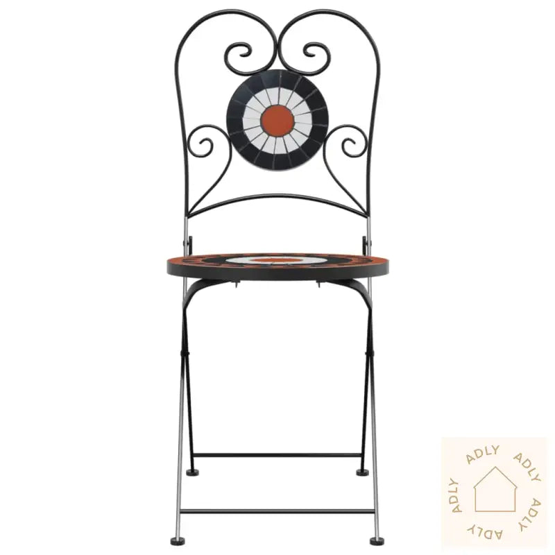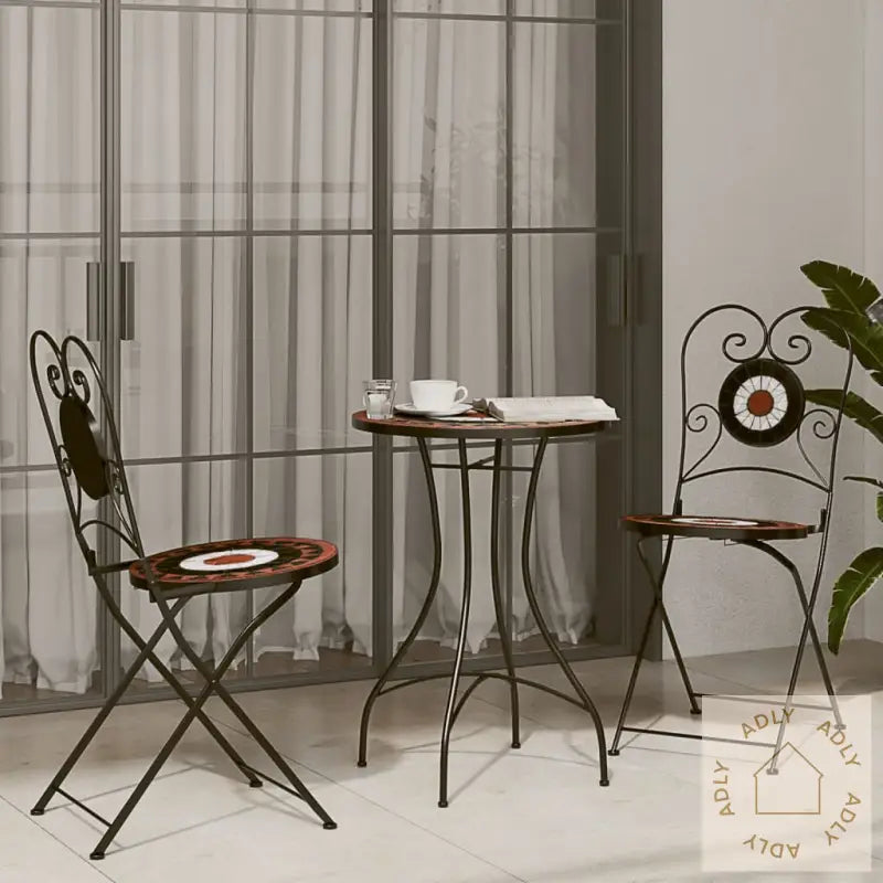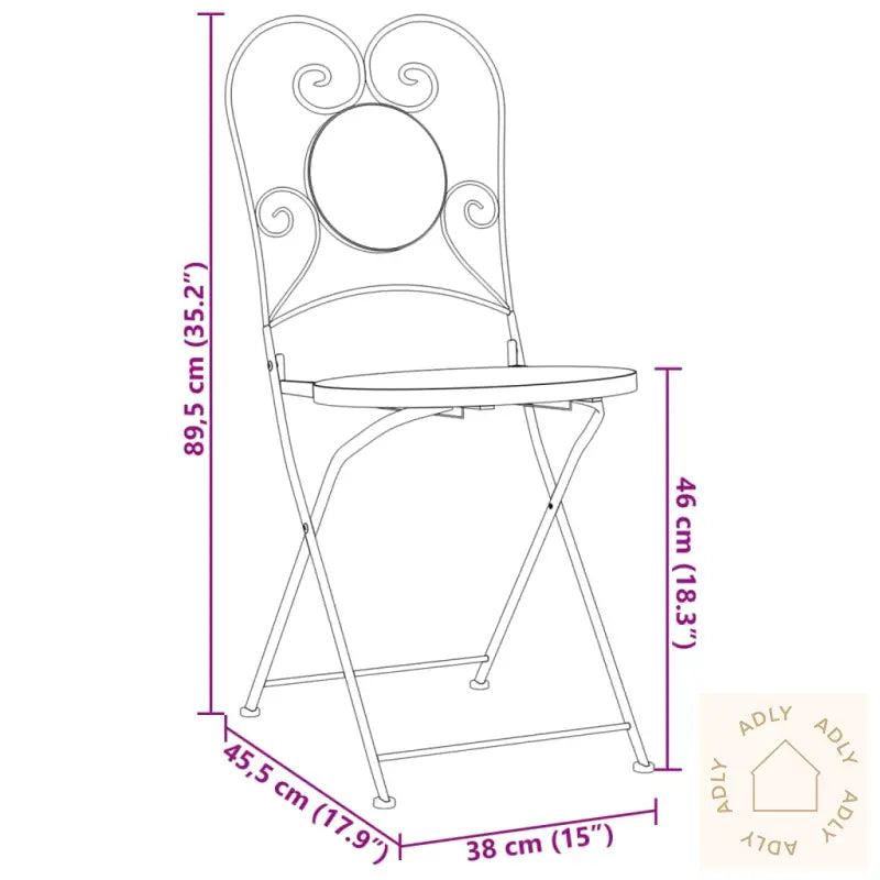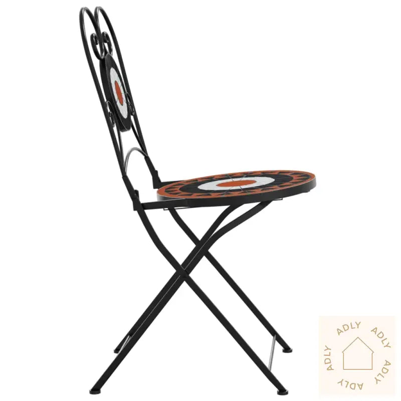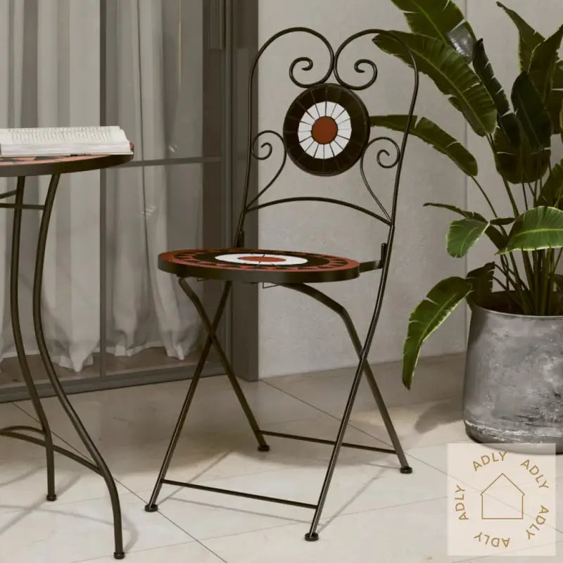 Stabil keramisk overflate som er enkel å holde ren: Stolene har en solid bordplate i keramikk, som både ser flott ut og tåler daglig bruk. Overflaten er motstandsdyktig mot flekker og enkel å tørke av med en fuktig klut – perfekt for utemøbler som du vil bruke hele sesongen!Robust og stabil ramme: Bistrostolene består av en pulverlakkert jernramme som gir høy stabilitet og sikrer lang levetid, uansett om du bruker dem innendørs som møbler til hjemmet eller ute som hagemøbler. Du får pålitelige møbler som holder seg fine lenge, selv ved mye bruk.Praktisk sammenleggbart design: Når du ikke trenger stolene, kan de enkelt foldes sammen for enkel oppbevaring. Dette gjør dem perfekte for små uteplasser, balkonger eller når du vil frigjøre plass.Middelhavsinspirert mosaikk: Den detaljerte mosaikken gir stolene et elegant preg og skaper en avslappende middelhavsatmosfære, enten det er på terrassen, verandaen eller blant dine andre utendørsmøbler.Godt å vite: