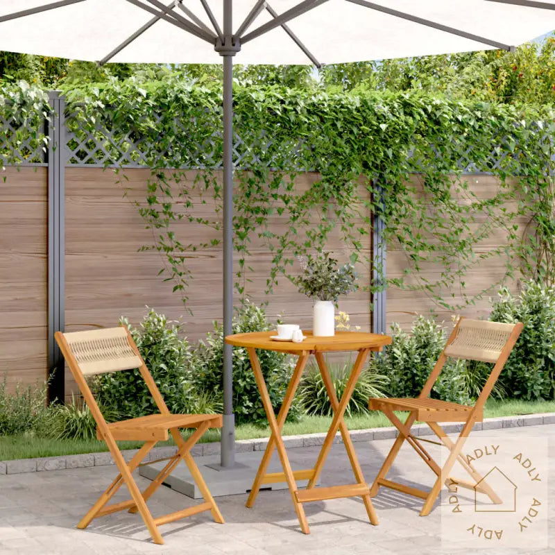 Robust og stabil: Heltre akasie utmerker seg med sin gode holdbarhet og styrke, noe som gjør materialet ideelt til utemøbler. Den vakre overflaten har livlige, naturlige fargeskiftninger og unike årringer – ingen deler er helt like! Hagemøblene holder seg pene år etter år, og tåler bruk både ute og inne, noe som er spesielt praktisk i skiftende norsk vær.Praktisk design: Stolene er utformet uten armlener, men med god ryggstøtte slik at du får ekstra bevegelsesfrihet og komfort. Det gir en avslappet sittestilling der du enkelt kan strekke deg eller snu deg mot samtalen rundt bordet.Stabil bordplate: Bordet har en stødig plate der det er enkelt å servere både drikkevarer, snacks og fruktkurver. Dette gir deg rikelig plass til å pynte med dine favorittdekorasjoner eller kanskje et lite blomsterarrangement for å gjøre uterommet enda hyggeligere.Sammenleggbart design: Hele settet – både bord og stoler – kan brettes sammen på et blunk. Dette gjør lagring og transport superenkelt, perfekt hvis du har liten plass på terrassen, eller vil ta møblene med til hytta. Løsningen er praktisk for alle som setter pris på fleksible møbler til hjemmet sitt.Godt å vite: