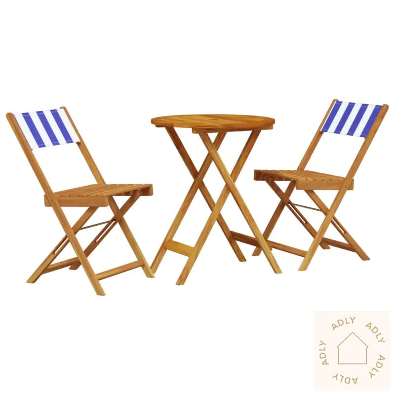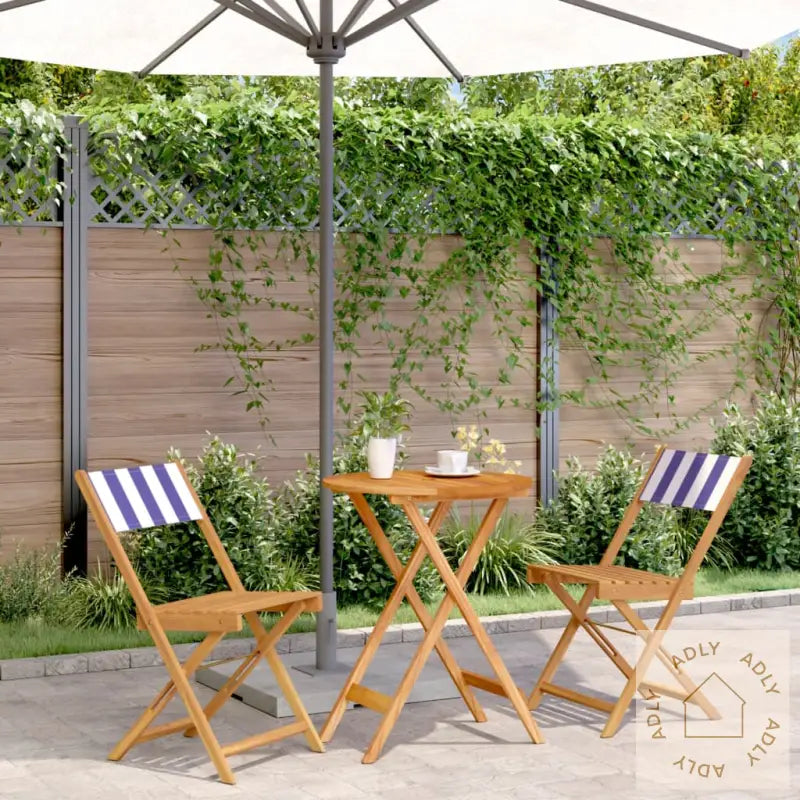 Hvis du vil at dine nye hagemøbler skal holde seg pene lenge, anbefaler vi et vanntett trekk. Det beskytter treverket gjennom regnværsdager og når settet lagres.Bord:Materiale: oljebehandlet heltre akasieMål: 60 x 75 cm (Diameter x H)Diameter parasollhull: 50 mm — enkelt å sette inn en parasoll så du får litt ekstra skygge på solrike dagerSammenleggbarHagestol:Farger: blå og hvitMaterialer: heltre akasie med oljefinish, slitesterkt stoff (100% polyester)Samlet mål: 41 x 52,5 x 102,5 cm (B x D x H)Mål sete: 38 x 35 cm (B x D)Høyde sete fra bakken: 44 cmMaksimal lastekapasitet (per sete): 110 kgPute inkludert: neiMontering kreves: jaLeveransen inneholder:1 x hagebord2 x hagestolerEnten du er ute etter møbler til hjemmet, eller vil oppgradere uterommet med kvalitetsmøbler i heltre akasie, er dette bistrosettet et supert valg for både hygge og funksjon.