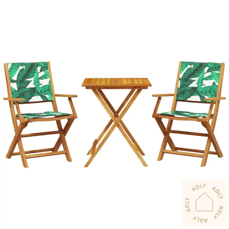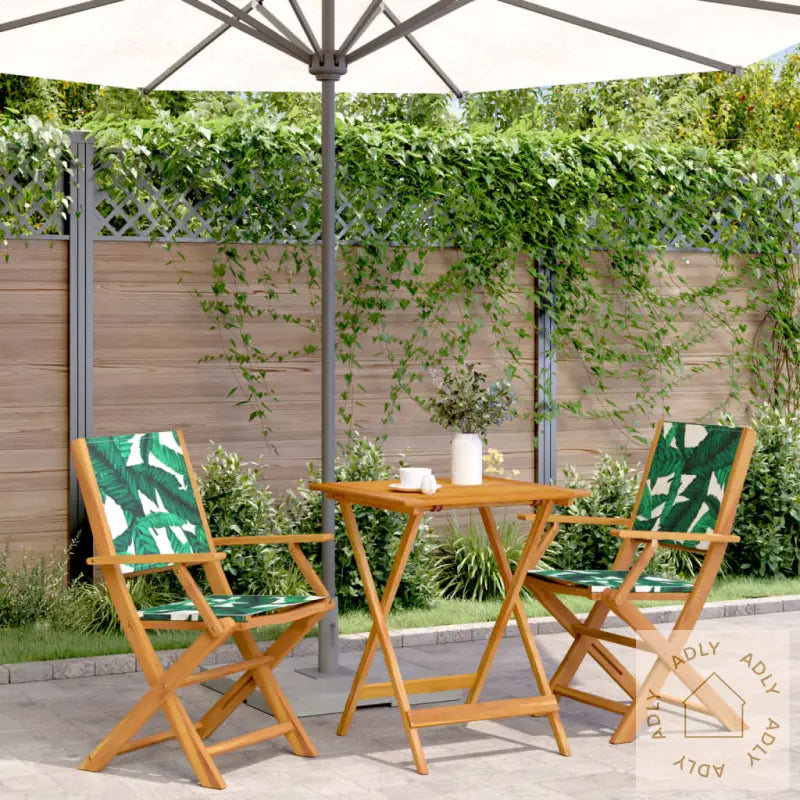 For at dine nye hagemøbler av heltre akasie skal holde seg fine over tid, anbefales det å bruke et vanntett trekk når de ikke er i bruk.Bord:Materiale: oljebehandlet heltre akasieMål: 60 x 60 x 75 cm (L x B x H)SammenleggbarHagestol:Farge: grønnMaterialer: heltre akasie med oljefinish, stoff (100% polyester)Mål: 54 x 58 x 91 cm (B x D x H)Mål sete: 40 x 38 cm (B x D)Høyde sete fra bakken: 44 cmHøyde armlene fra bakken: 63 cmMaksimal lastekapasitet (per sete): 110 kgMed bladtrykkPute inkludert: neiMontering kreves: jaLeveransen inneholder:1 x hagebord2 x hagestoler