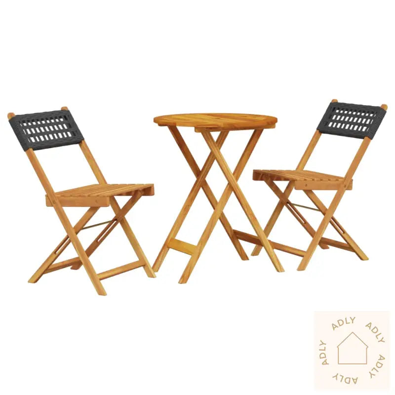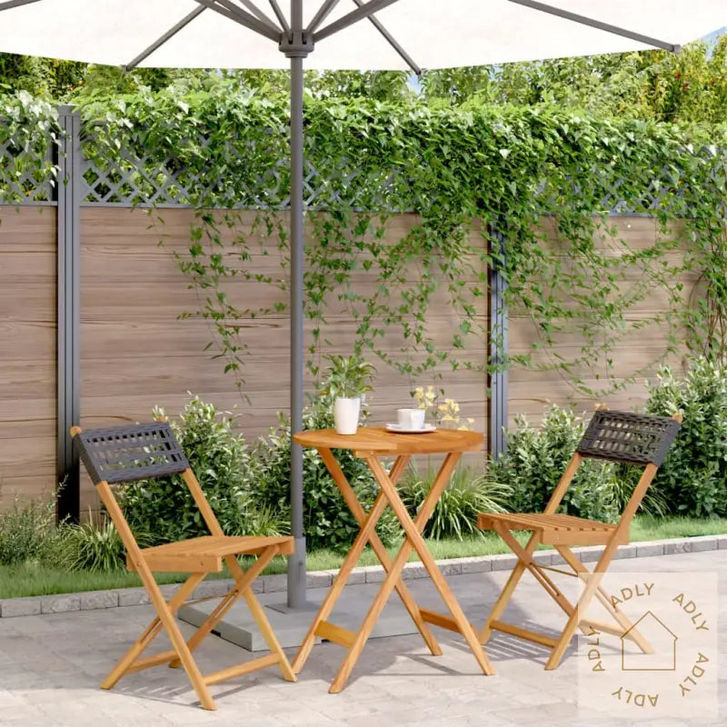 Robust og stabil: Settet er laget av heltre akasie, et naturmateriale kjent for sin styrke, lange levetid og karakteristiske utseende. Akasietreets ulike fargetoner og unike mønster gjør hvert enkelt møbel spesielt. Denne tresorten tåler både bruk og skiftende værforhold, noe som gjør den ideell for utemøbler som skal vare år etter år.Slitesterkt materiale: PE-rotting (polyrotting) gir et moderne preg til settet, og kombinerer utseendet til tradisjonell rotting med moderne slitestyrke. Dette vedlikeholdsfrie materialet holder seg pent over tid, tåler regn og sol godt, og er lett å rengjøre – perfekt til deg som vil ha funksjonelle og stilrene møbler til hjemmet uten mye ekstraarbeid.Praktisk design: Stolene uten armlener med høy rygg gir bevegelsesfrihet samtidig som de er komfortable å sitte i, enten du slapper av med en bok, inviterer til middag eller bare nyter utsikten.Stabil bordplate: Bordplaten i solid heltre akasie gir trygg støtte til alt fra kaffekopper, fruktskåler og små retter til dekor og levende lys. Den har også parasollhull, slik at du enkelt kan skjerme deg mot solen på varme dager.Sammenleggbart design: Både bord og stoler kan raskt brettes sammen når du trenger mer plass eller skal lagre dem gjennom vinteren, så du slipper tunge løft og får mer fleksibilitet i hverdagen.Med sitt gjennomtenkte og tidløse design passer dette bistrosettet inn i de fleste miljøer – enten du har en romslig hage, en urban balkong eller ønsker flere bruksmuligheter blant dine andre hagemøbler, bokhyller og stående hyller.