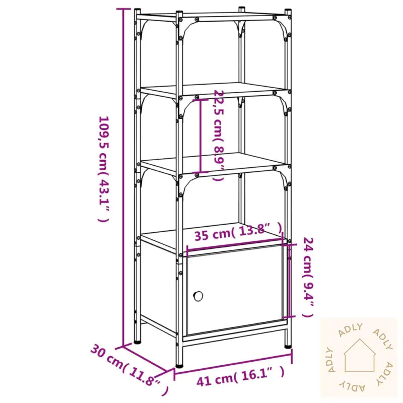 For å hindre at møbelet velter må du bruke den medfølgende festeanordningen.Farge: brun eikMaterialer: konstruert tre, metallMål: 41 x 30 x 109,5 cm (L x B x H)Maks. lastekapasitet per hylle: 30 kgMontering kreves: jaJuridiske dokumenter: