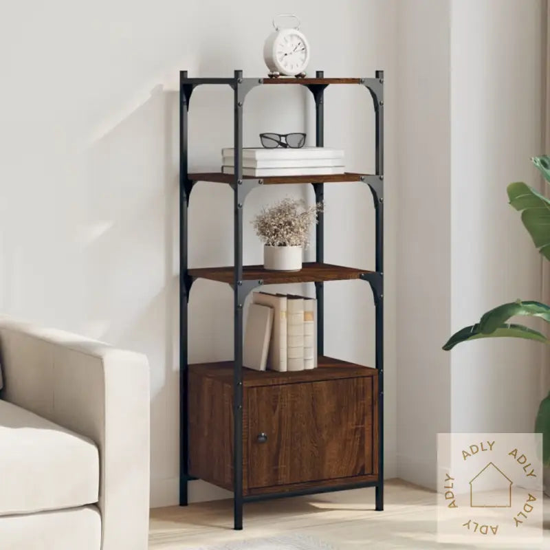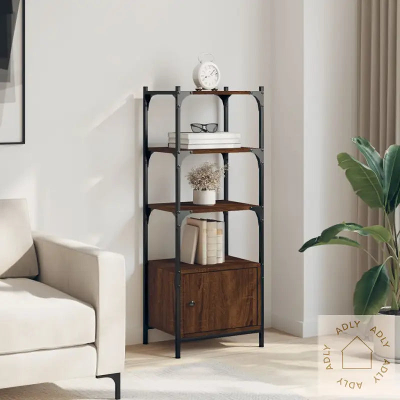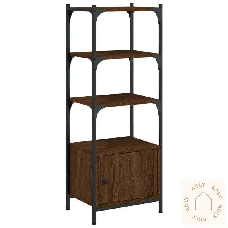 Slitesterkt materiale: Konstruert treverk gir robusthet og lang levetid. Den glatte overflaten gjør ikke bare hyllen stilren, men også enkel å holde ren – perfekt for en travel hverdag. Materialet er motstandsdyktig mot fuktighet, så hyllen holder seg pen over tid.Rikelig med oppbevaring: Med flere hyller får du god plass til både bøker, magasiner, pyntegjenstander eller det du ellers ønsker å vise fram og ha lett tilgjengelig.Justerbare føtter: De praktiske justerbare føttene sørger for at bokhyllen står stødig selv om gulvet ikke er helt jevnt, og plastputene beskytter underlaget mot riper. Dette gjør hyllen fleksibel og enkel å plassere ulike steder i hjemmet.Praktisk dør: Døren holder favorittbøkene, viktige papirer eller andre nødvendigheter beskyttet mot støv og gir en diskret måte å oppbevare ting på, samtidig som rommet ser ryddig ut.Bokhyllen i brun eik har et lettstelt design som passer i de fleste rom, enten det er stue, kontor eller soverom. Justerbare føtter gjør den ekstra praktisk, og den solide konstruksjonen gir deg et møbel du kan ha glede av lenge.