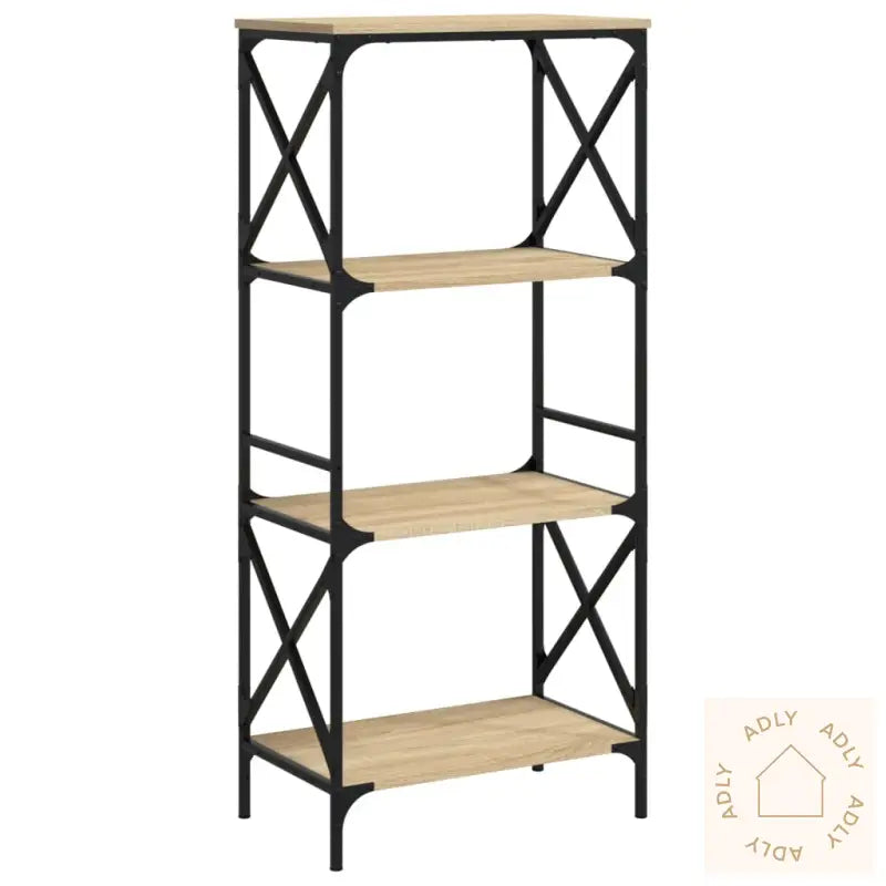Slitesterkt materiale: Det konstruerte treverket har en slitesterk og glatt overflate, samt styrke og motstand mot fuktighet. Sonoma eik-finishen gir et moderne preg, og materialet gjør at bokhyllen er enkel å holde ren og vedlikeholde.Rikelig med oppbevaring: Med god lagringsplass gir bokhyllen mulighet til å organisere alt fra magasiner og bøker til dekorative gjenstander og nødvendigheter, slik at du lett får oversikt og orden i hjemmet.Justerbare føtter: De fire justerbare føttene sørger for optimal stabilitet selv på ujevnt underlag. Plastputene beskytter gulvet og gjør at bokhyllen står trygt, noe som gir økt trygghet – spesielt i hjem med barn eller kjæledyr.Metallramme: Den robuste metallrammen setter et industripreg på innredningen og sikrer ekstra lang levetid. Kombinasjonen av metall og sonoma eik gjør dette til et allsidig valg når du ser etter møbler til hjemmet med både stil og funksjon.Advarsel: