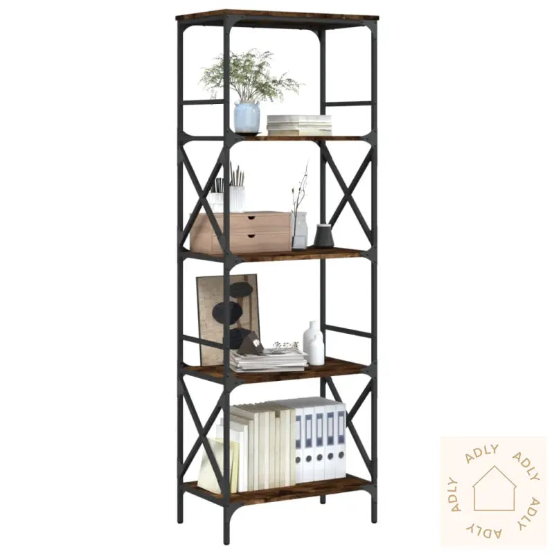 Slitesterkt materiale: Den er laget av konstruert treverk av eksepsjonell kvalitet, som har en jevn overflate og imponerende styrke. Materialet gjør at bokhyllen tåler daglig bruk, samtidig som det er lett å holde rent. Den har også høy motstand mot fuktighet – perfekt for norske hjem.Rikelig med oppbevaring: Bokhyllen tilbyr god plass til magasiner, bøker, bilder og andre dekorative gjenstander du vil ha lett tilgjengelig. Perfekt for å holde stua, soverommet eller kontoret oversiktlig og organisert.Justerbare føtter: Fire justerbare føtter med plastputer sørger for at møblene står stødig, selv om gulvet ikke er helt jevnt. Disse justerbare føttene gir bedre stabilitet og beskytter gulvet mot riper.Metallramme: Den solide metallrammen forsterker konstruksjonen og bidrar med en industriell stil som passer inn i de fleste moderne hjem. Samtidig gir den ekstra holdbarhet, noe som gjør denne bokhyllen til en smart investering blant møbler til hjemmet.Advarsel: