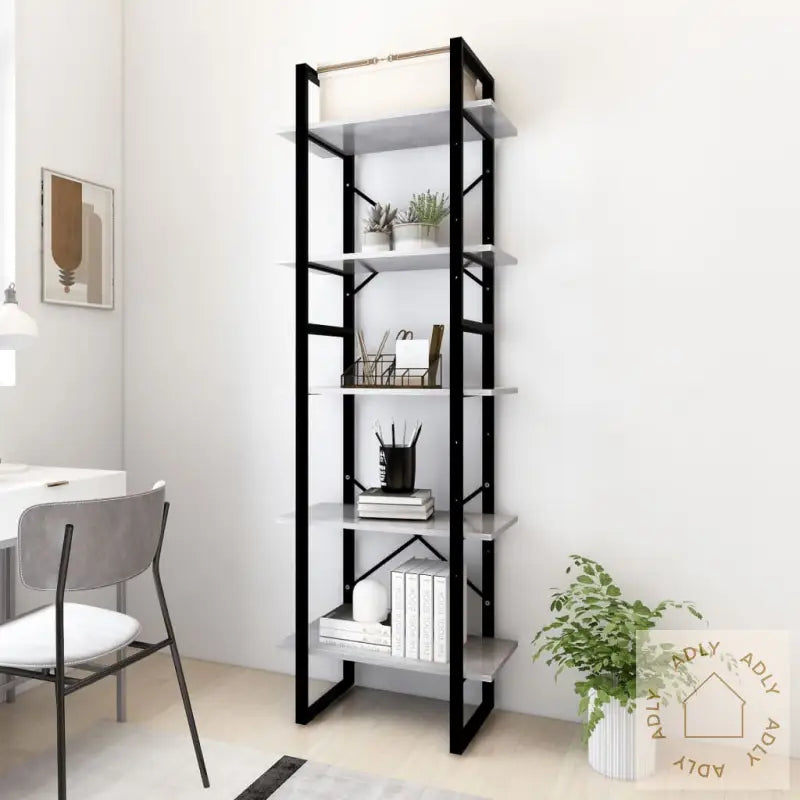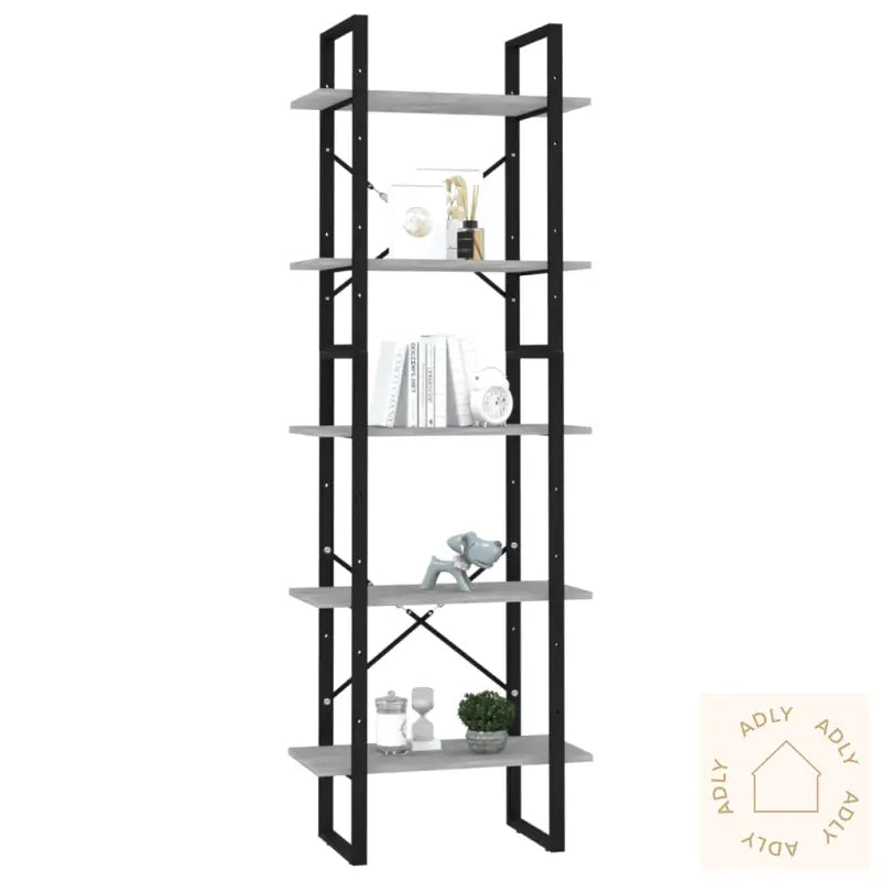 Farge: betonggråMaterialer: konstruert tre, metallMål (høy): 60 x 30 x 105 cm (B x D x H)Mål (lav): 60 x 30 x 70 cm (B x D x H)Montering kreves: jaADVARSEL: For å unngå at bokhyllen velter bør du bruke en passende festeanordning mot vegg (ikke inkludert).