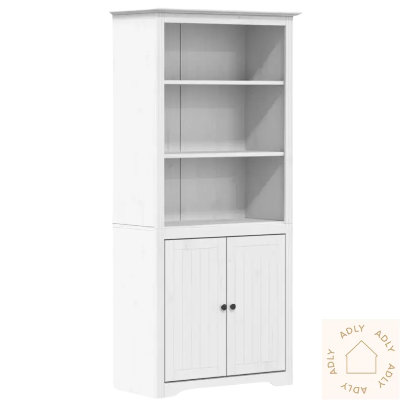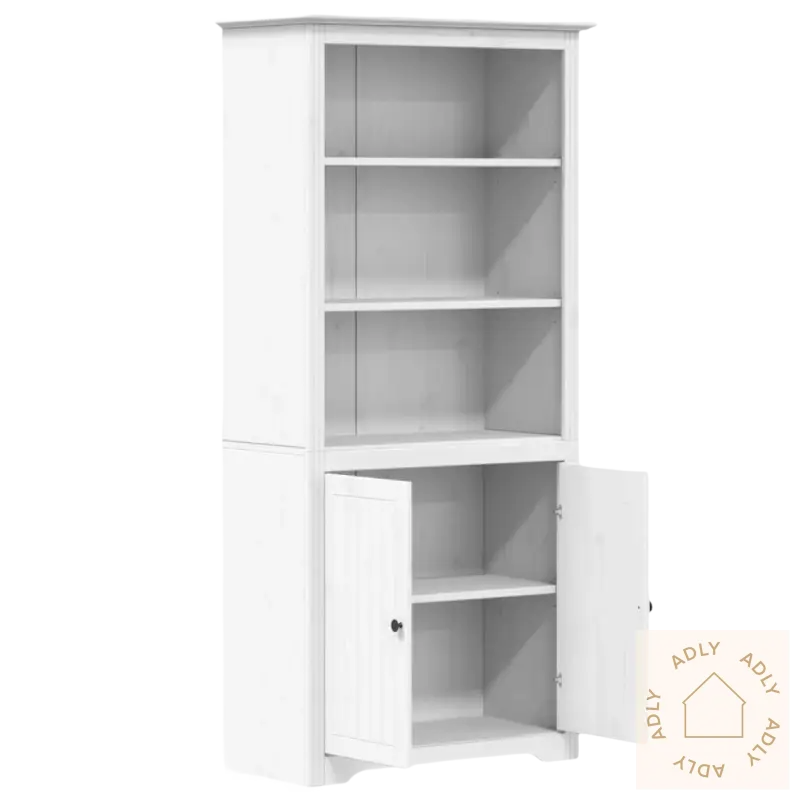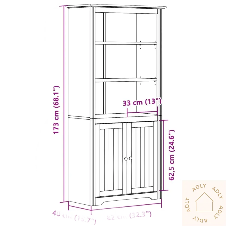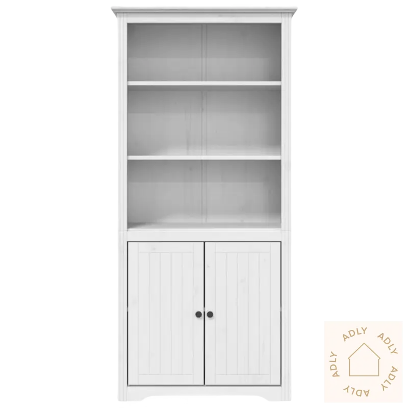 - Heltre furu: Bokhyllen er laget av ekte heltre furu – et vakkert og solid naturmateriale. Furuens rette årringer og karakteristiske knuter gir hyllen et sjarmerende, rustikt uttrykk, samtidig som materialet gir en ekstra robusthet og lang levetid.
