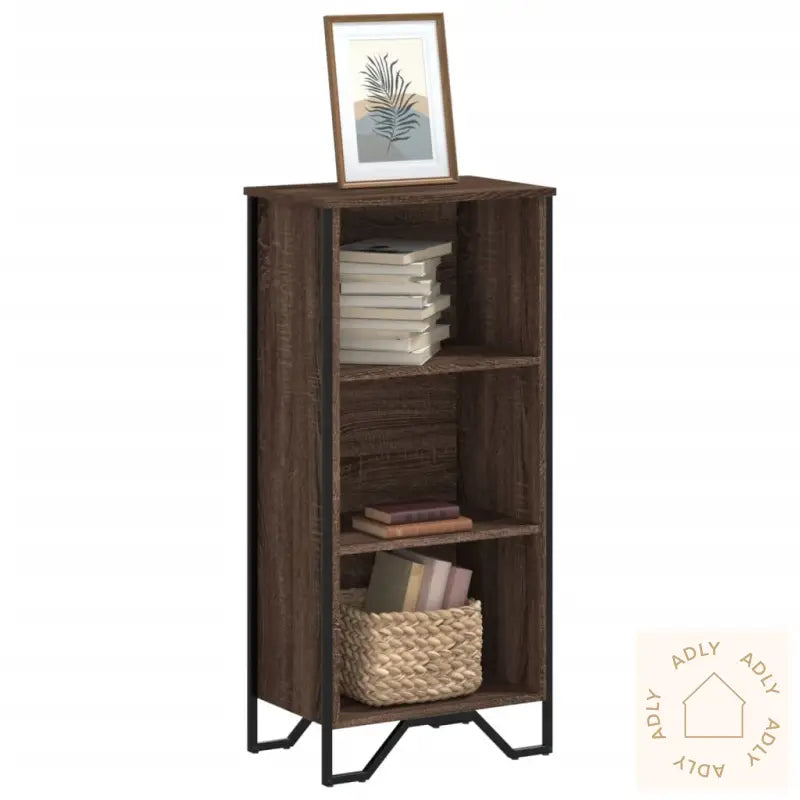 Holdbart materiale: Bokhyllen er laget av kvalitetskonstruert treverk som byr på ekstra styrke og stabilitet. Overflaten er glatt, og materialet tåler godt både daglig bruk og en fuktig hverdag – noe som gjør det lett å holde hyllen pen og ren over tid.Rikelig med lagringsplass: Med tre åpne hyller får du god plass til å organisere bøker, pyntegjenstander eller andre småting du vil ha lett tilgjengelig. Alt holdes organisert og oversiktlig, samtidig som det er lett å skape personlig preg ved å style hyllene slik du ønsker.Stabil og solid topp: Øverst på oppbevaringsskapet har du en robust flate, ideell for å stille ut bilder, dekor eller potteplanter. Dette tilfører ikke bare mer lagringsplass, men lar deg også fremheve dine favorittgjenstander på en lekker måte.Metallføtter: De moderne metallføttene gir bokhyllen et rolig og minimalistisk uttrykk, samtidig som de tilfører ekstra stabilitet. Dette gjør hyllen trygg å bruke, selv på litt ujevne underlag, og bidrar til at møblet står stødig over tid.Advarsel: