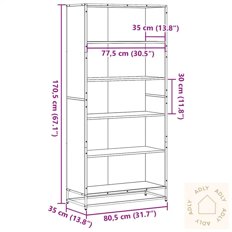 For å forhindre at produktet velter og ivareta sikkerheten, må bokhyllen sikres til veggen med den medfølgende festeanordningen.Farge: Brun eikMaterialer: Konstruert tre, metallMål: 80,5 x 35 x 170,5 cm (B x D x H)Maksimal lastekapasitet (topp): 30 kgMaksimal lastekapasitet (hvert lag): 25 kgMaksimal lastekapasitet (totalt): 80 kg5 åpne rom gir oversiktlig oppbevaringMontering krevesLegal Documents: