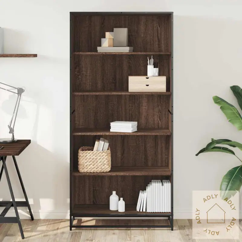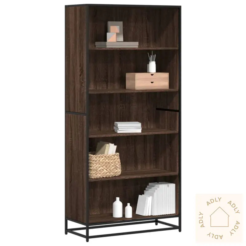 Stabilt og slitesterkt materiale: Bokhyllen er laget av konstruert tre, et robust og stabilt materiale. Overflaten er jevn og motstandsdyktig mot fukt, sprekker og vridning. Dette gir deg en holdbar reol du kan stole på, året rundt.Ekstra solid ramme i metall: Metallrammen med industrielt preg gir ikke bare et moderne uttrykk, men sørger også for eksepsjonell styrke og lang levetid. Den er spesielt utviklet for å tåle daglig bruk og motstå korrosjon over tid.God plass til oppbevaring: Med fem åpne rom har du rikelig med plass til å holde både bøker, blader, DVD-er eller multimedieenheter ryddig og lett tilgjengelig. Dette gir god oversikt samtidig som det skaper orden hjemme.Allsidig bruk: Enten du trenger et møbel til stua di, soverommet, gangen eller til og med garasjen, passer denne oppbevaringshyllen fra brun eik inn. Den er like fin sammen med andre hagemøbler som blant resten av møblene i hjemmet.Lett å vedlikeholde: Overflaten er glatt og enkel å rengjøre – tørk raskt av med en fuktig klut når det trengs. En praktisk egenskap som gjør at møbelet alltid fremstår pent og velholdt med minimalt vedlikehold.Advarsel:
