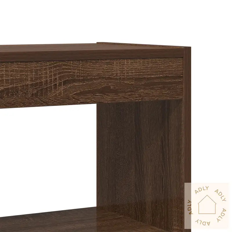 Denne hyllen i brun eik er et stilig og funksjonelt møbel til hjemmet, som gir både praktisk oppbevaring og et moderne uttrykk. Det minimalistiske og slanke designet passer perfekt for deg som vil ha orden på sakene uten å gå på kompromiss med interiøret. Hyllen gjør det lett å organisere hverdagen, enten du vil vise frem bøker, pyntegjenstander eller familiebilder – alt får en naturlig plass.