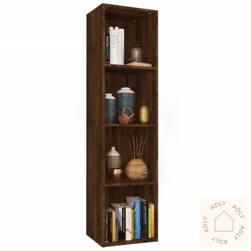 Denne klassiske bokhyllen i brun eik har et elegant design som gir både stil og funksjon til hjemmet ditt. Den er et dekorativt og praktisk tillegg som passer perfekt med forskjellige typer møbler til hjemmet.