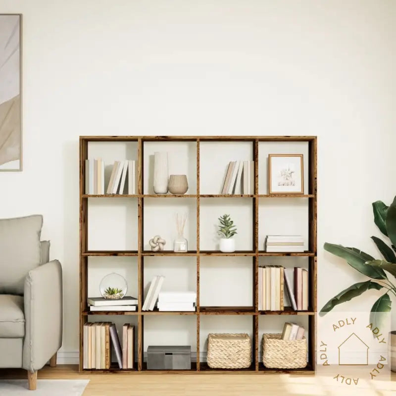 Holdbart materiale: Bokhyllen er laget av konstruert tre av høy kvalitet. Dette materialet gir hyllen en jevn og fin overflate, samtidig som det sørger for god styrke, stabilitet, og motstand mot fukt. Det gjør dette til et robust valg blant moderne møbler til hjemmet.Rikelig med lagringsplass: Med sine 16 store åpne rom gir bokhyllen deg masse plass til bøker, magasiner, DVDer, multimediautstyr og dekorative elementer. Her får du god oversikt og orden på tingene dine, samtidig som alt er lett tilgjengelig.Allsidig hylle: Bokhyllen fungerer ikke bare til bøker, men kan også brukes som romdeler. Dette gir deg fleksible innredningsmuligheter, noe som gjør den spesielt aktuell hvis du vil skape soner i rommet eller trenger stående hyller som kan tilpasses ulike behov.Enkel å vedlikeholde: Oppbevaringshyllen krever minimalt med vedlikehold og er lett å holde ren – det holder ofte med en lett fuktet klut for å fjerne støv og smuss.Advarsel: